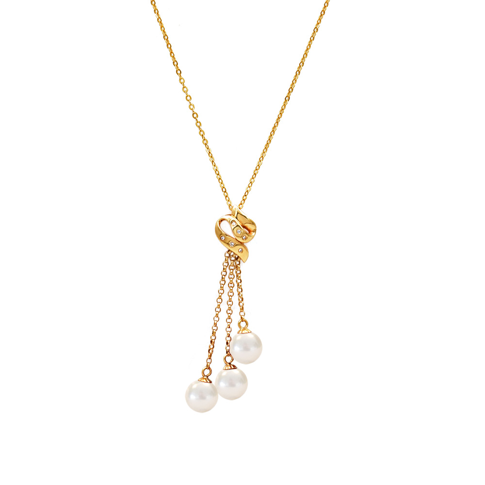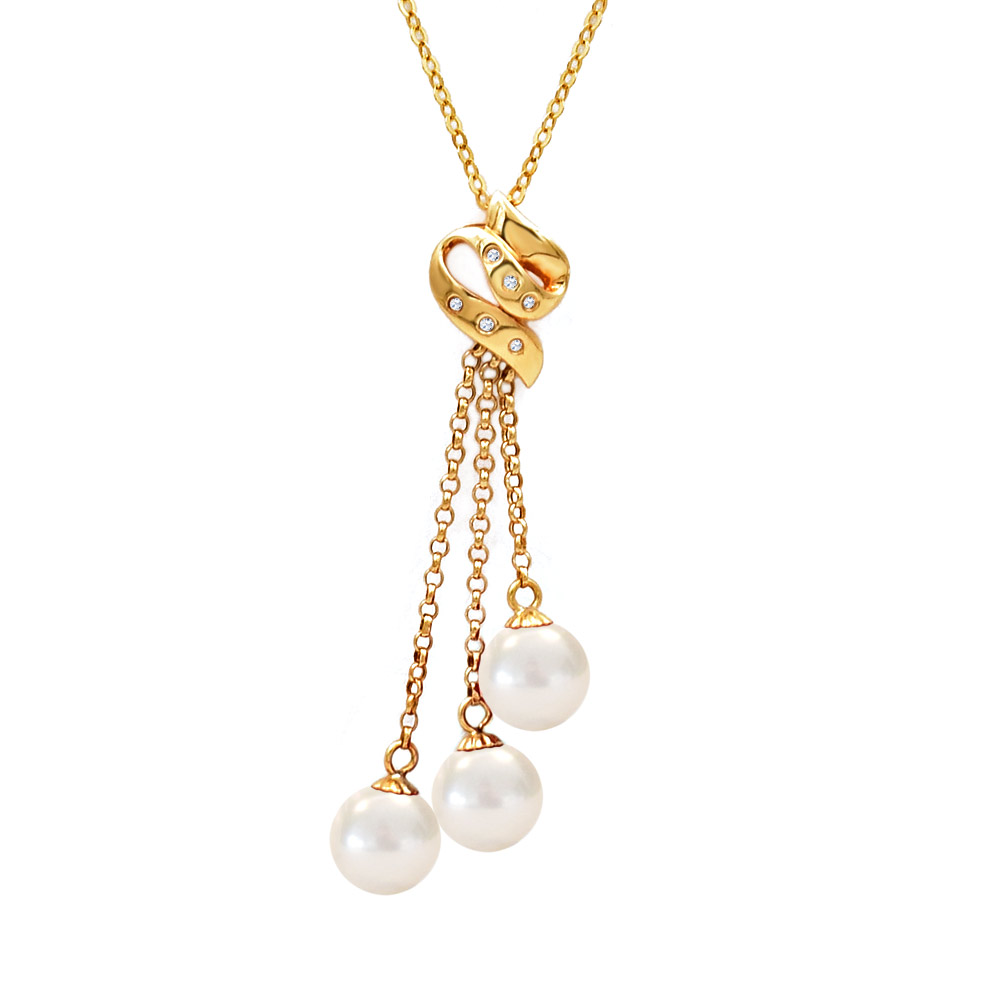 Κολιέ με μαργαριτάρια και διαμάντια σε χρυσή αλυσίδα Κ18 - F123212
