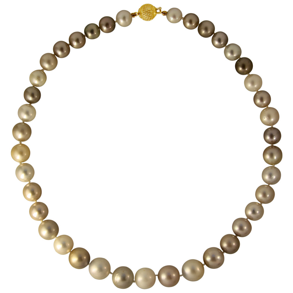 • Ένα καταπληκτικό κολιέ από 39 σπάνια και εντυπωσιακά φυσικά πολύχρωμα μαργαριτάρια South Sea διαμέτρου από 9,4 έως 12,3 χιλιοστά, άριστης ποιότητας σε σχήμα Round (στρόγγυλο) και βάρους 18,92 MOMME.