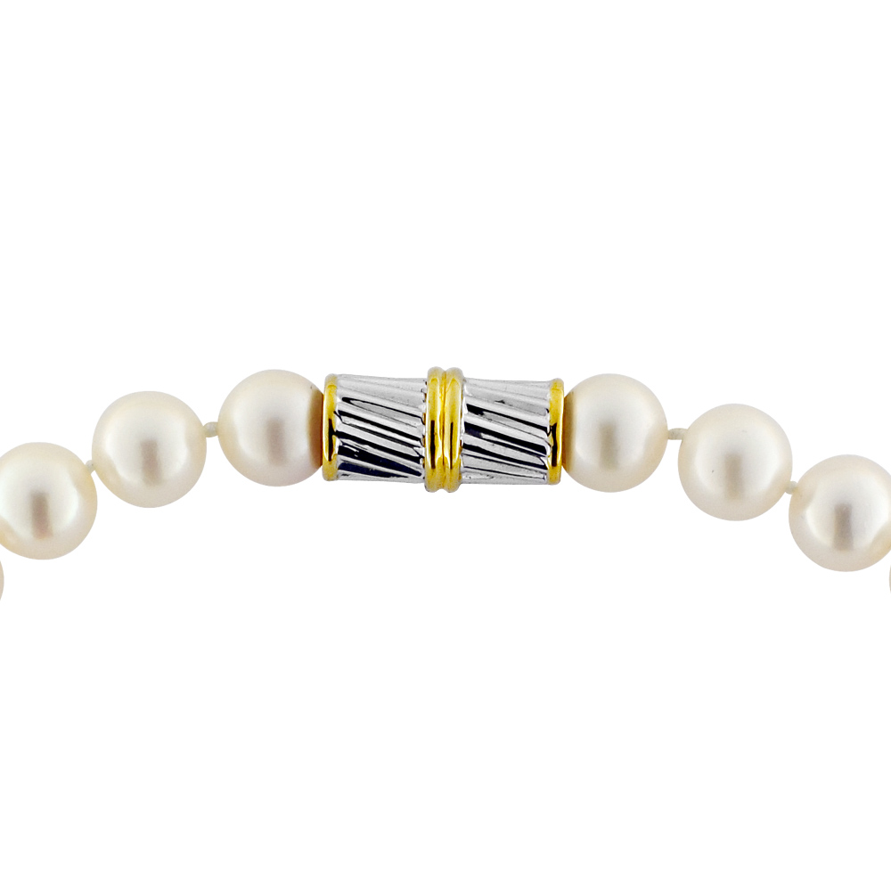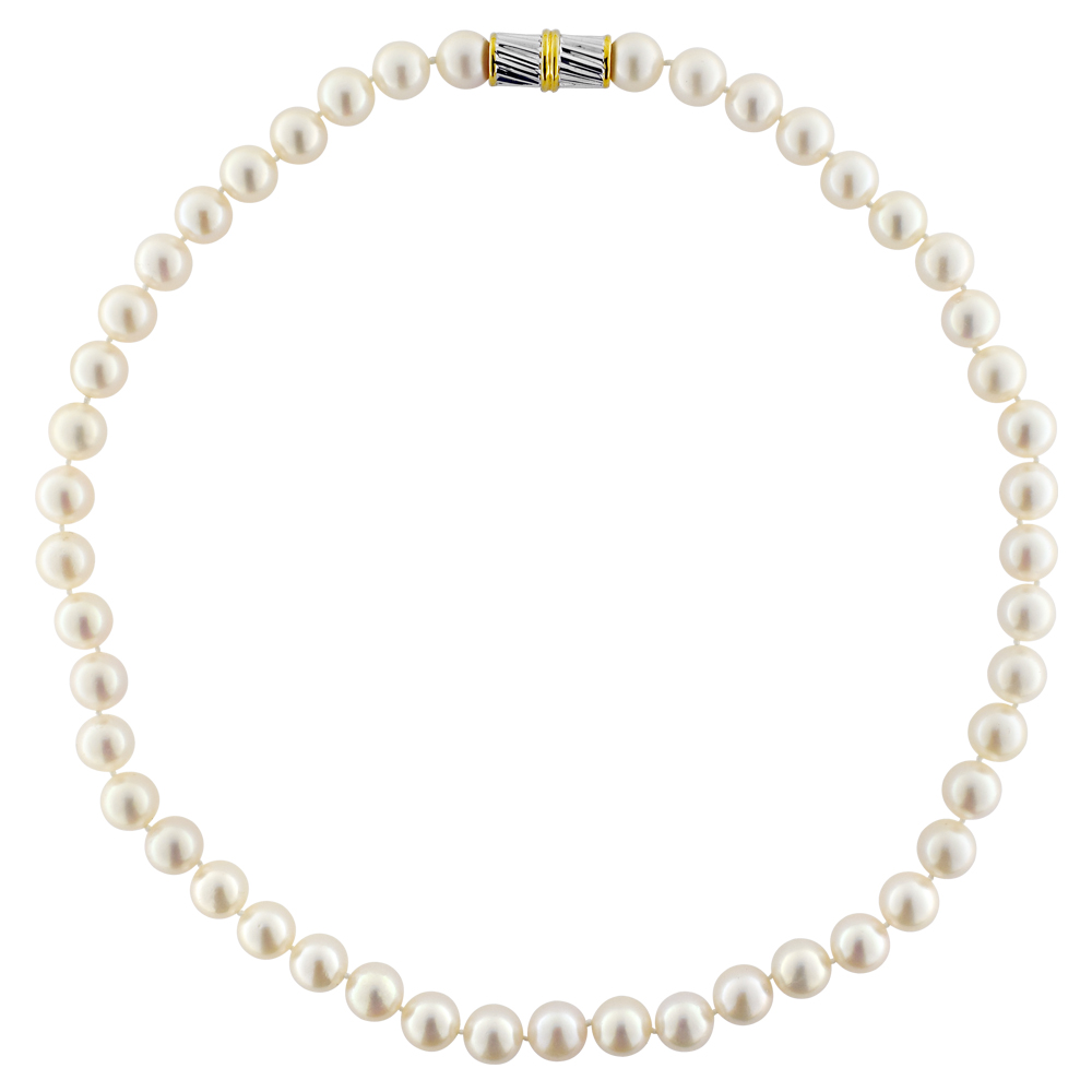 • Ένα μοναδικό κολιέ με ολοστρόγγυλα και εντυπωσιακά λευκά μαργαριτάρια θαλάσσης QTV Akoya Pearl διαμέτρου 8,5 έως 9,0 χιλιοστά, άριστης ποιότητας και εξαιρετικού γυαλίσματος.