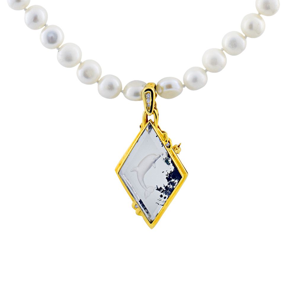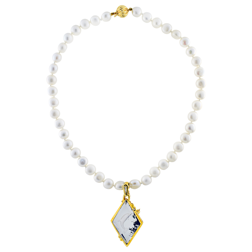 Κολιέ με μαργαριτάρια 7,0-9,0mm και χρυσό μενταγιόν Κ18 με διαμάντια - M119437