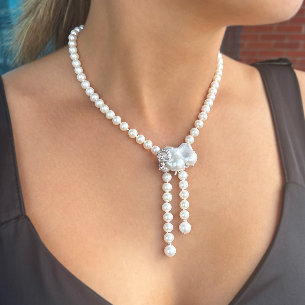 • Ένα υπέροχο κολιέ με λευκά στρόγγυλα μαργαριτάρια Fresh Water Pearl διαμέτρου 6,5-7 χιλιοστών, άριστης ποιότητας.