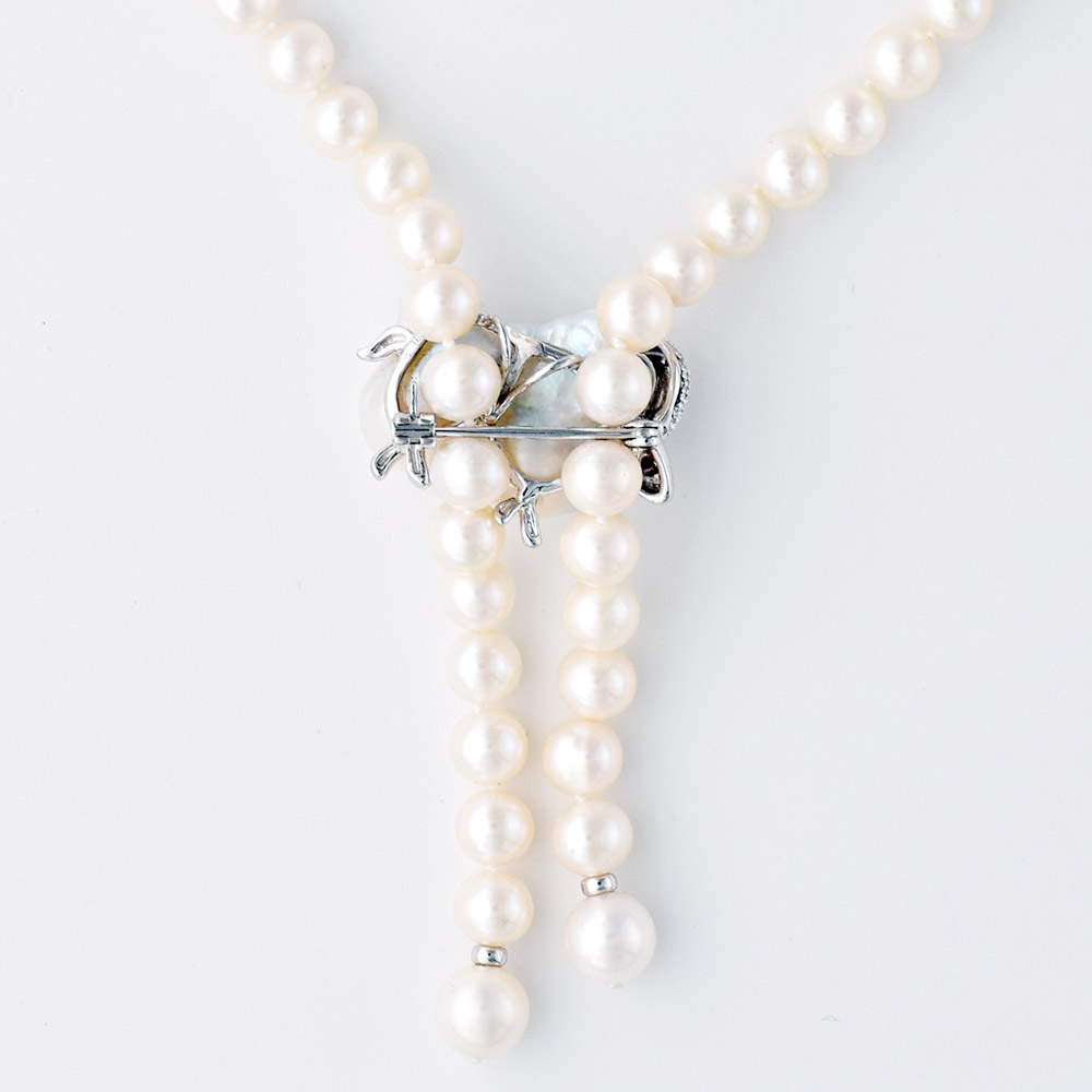 Κολιέ με μαργαριτάρια και λευκόχρυση καρφίτσα Κ18 - M119705