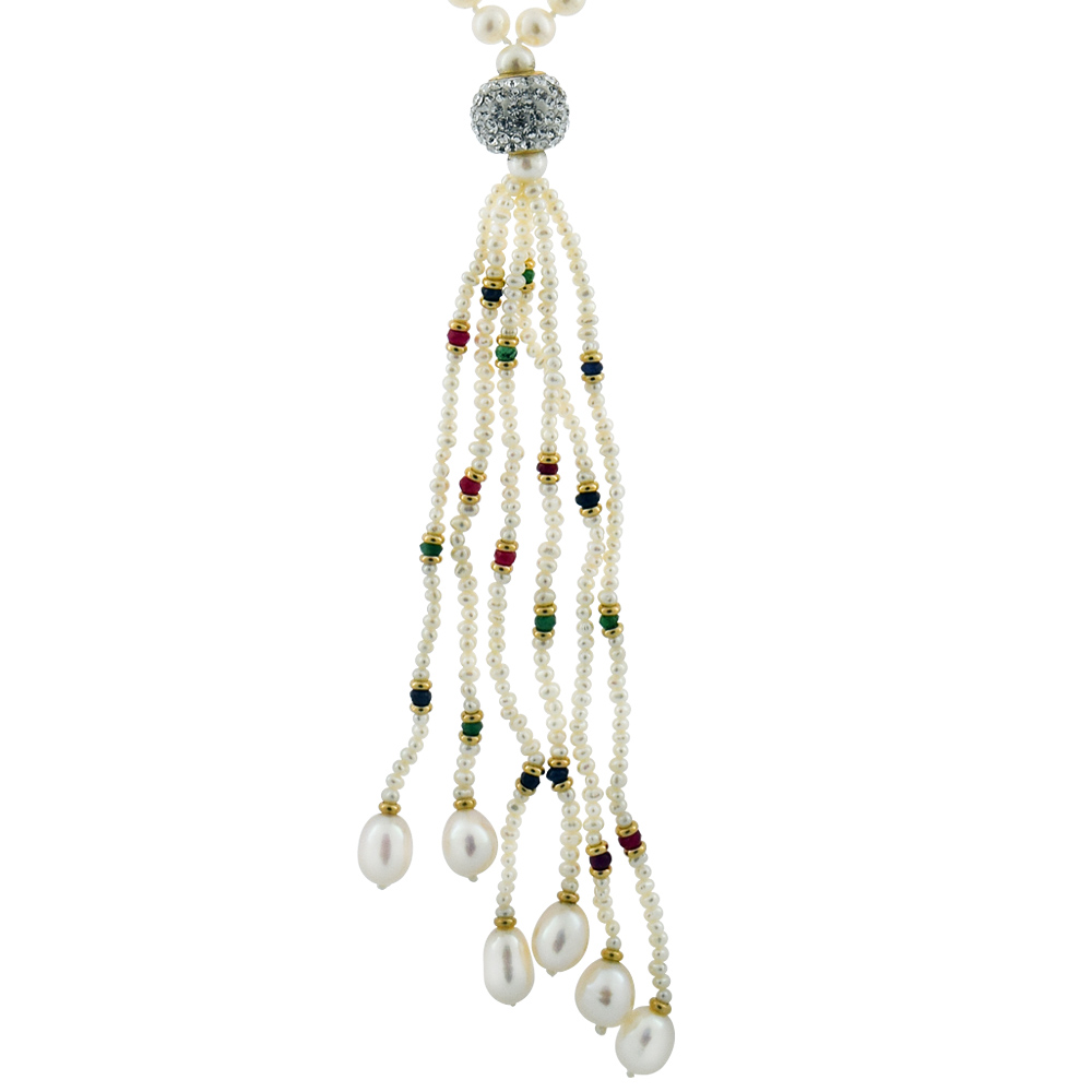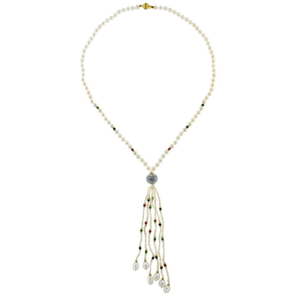 Κολιέ με Κ14 χρυσό κούμπωμα, λευκά μαργαριτάρια και πολύτιμους λίθους - M120632