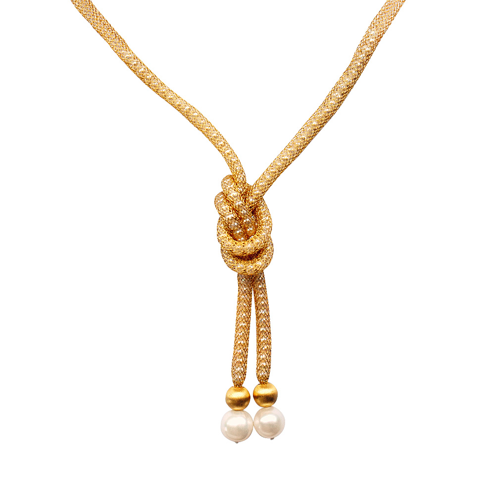 • Ένα υπέροχο κολιέ από χειροποίητο χρυσό πλεκτό Sock 18 καρατίων.