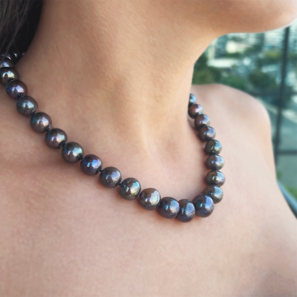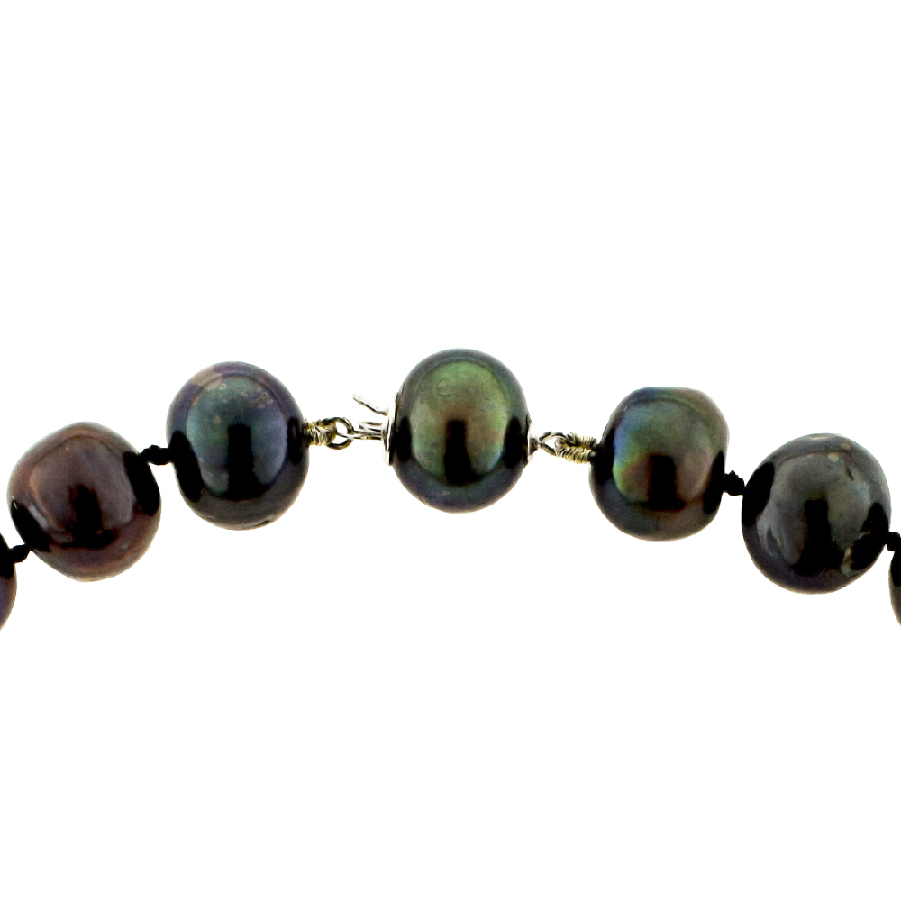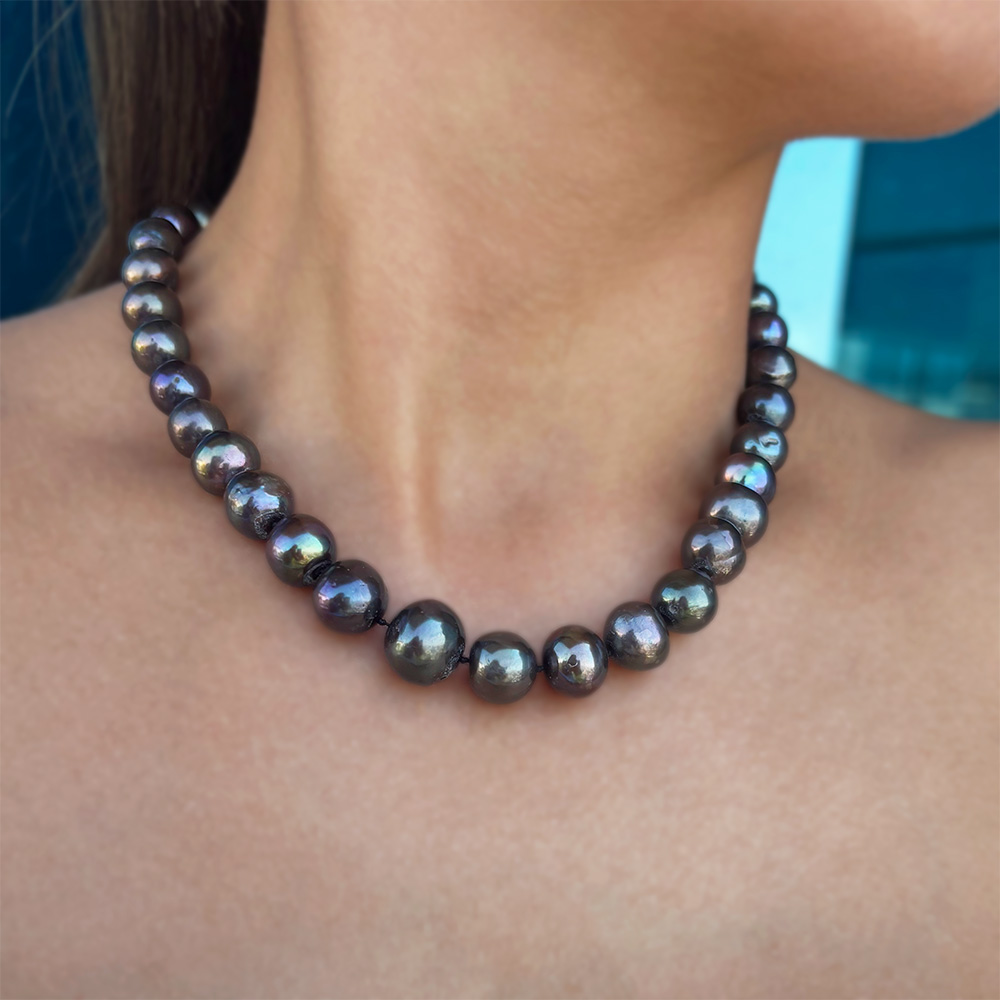 • Ένα υπέροχο κολιέ με μαύρα εντυπωσιακά μαργαριτάρια γλυκού νερού Fresh Water Pearl διαμέτρου 11-15 χιλιοστών.