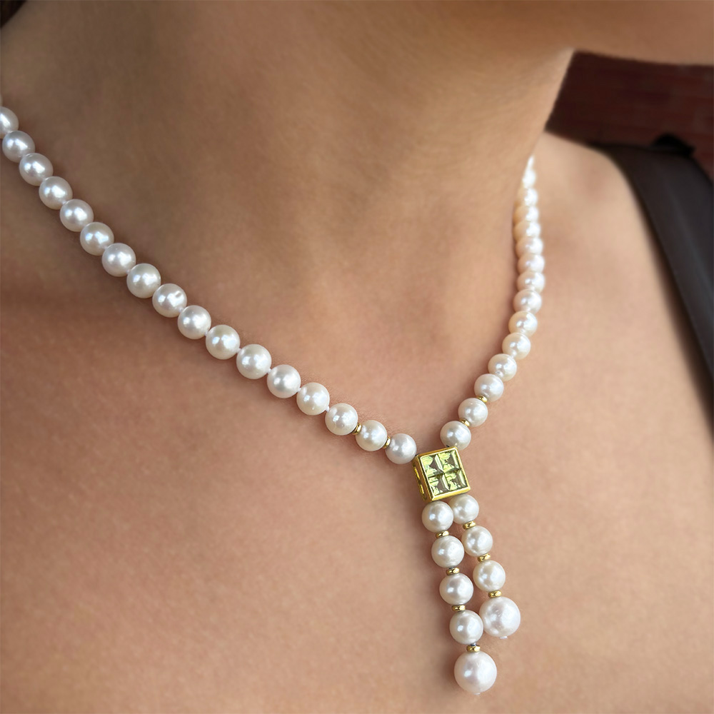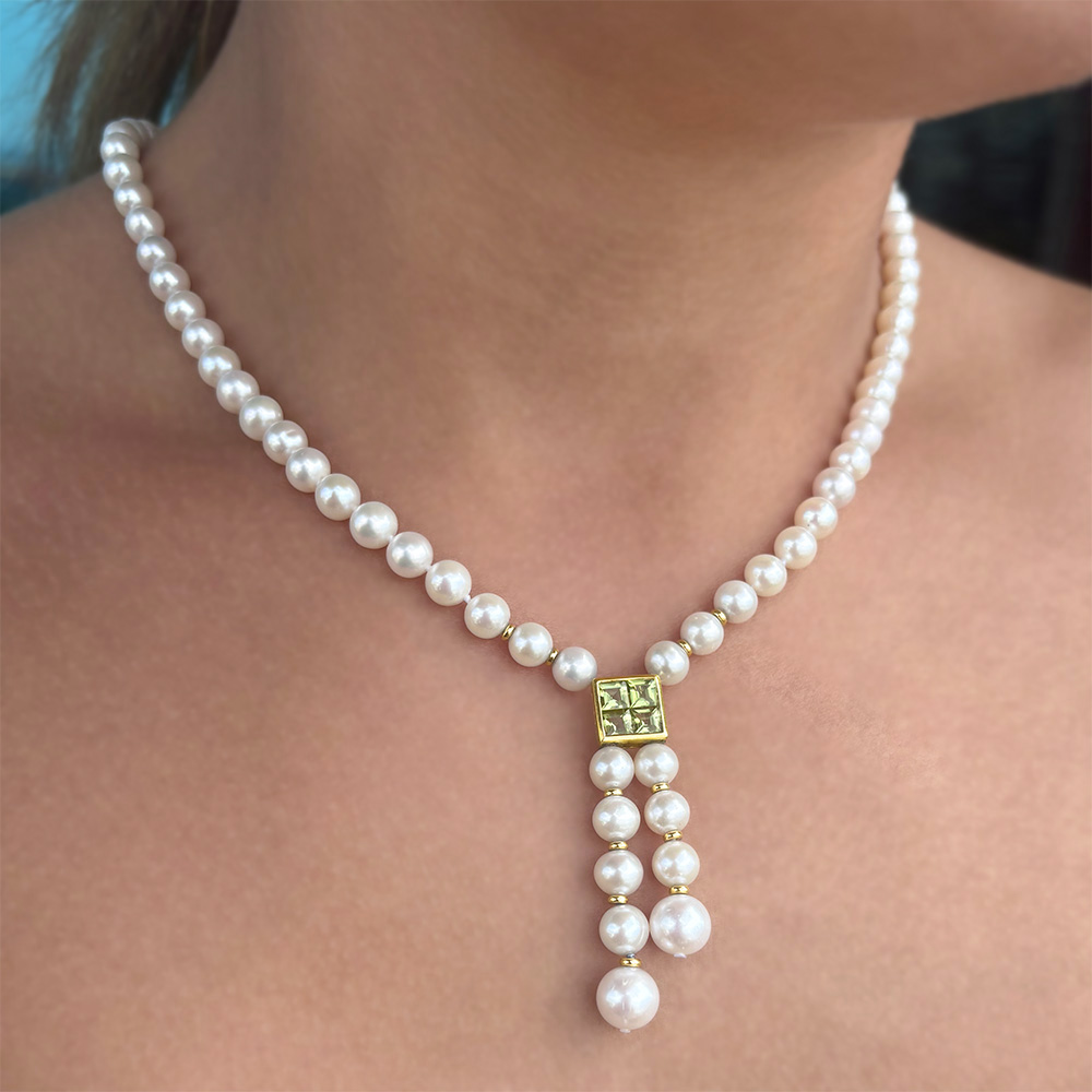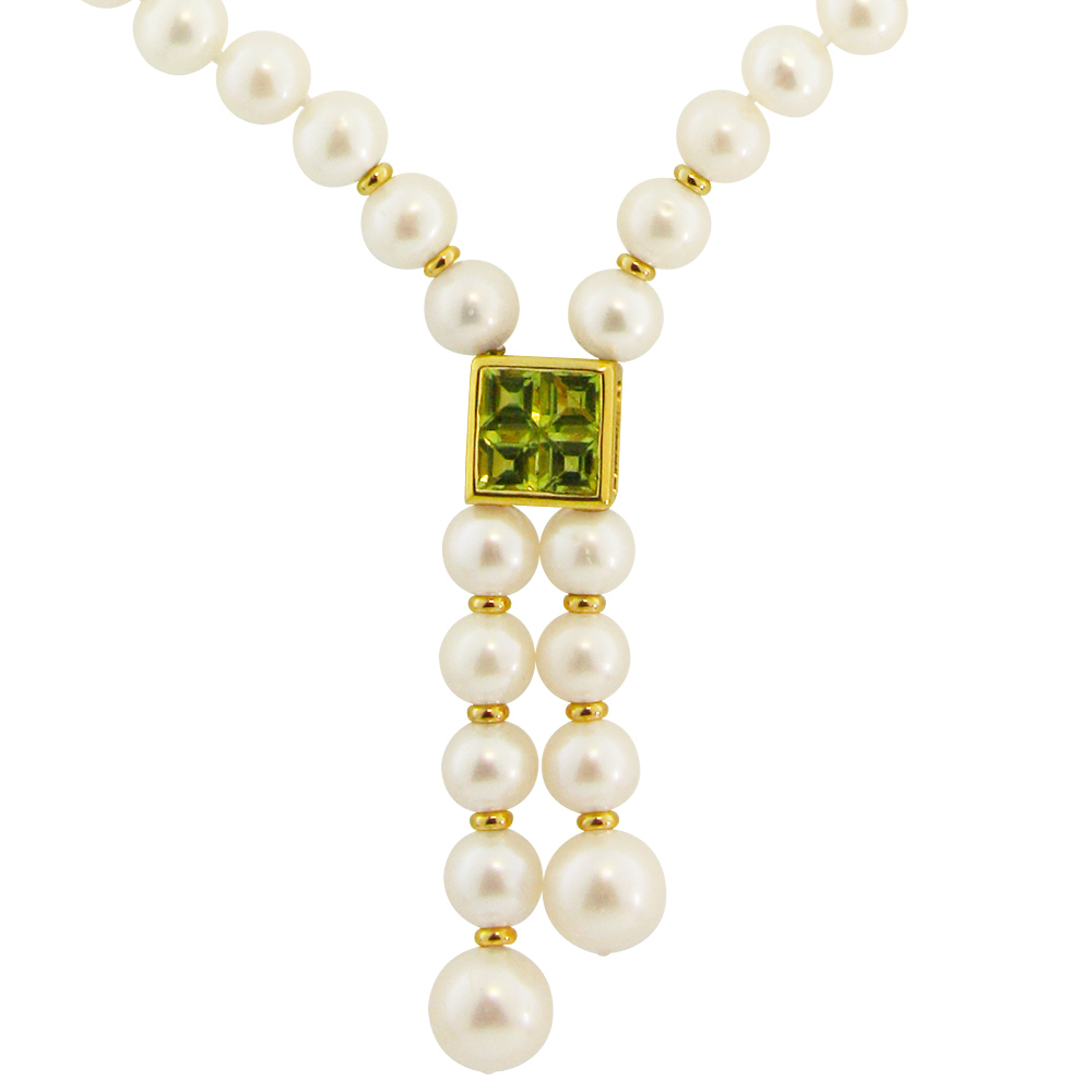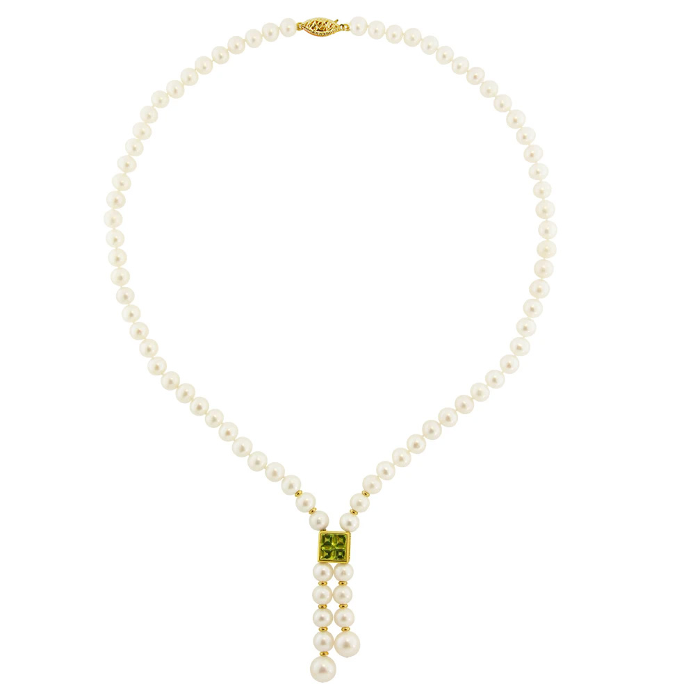 Κολιέ με Κ18 χρυσά στοιχεία, λευκά μαργαριτάρια και περίδοτο - M122343