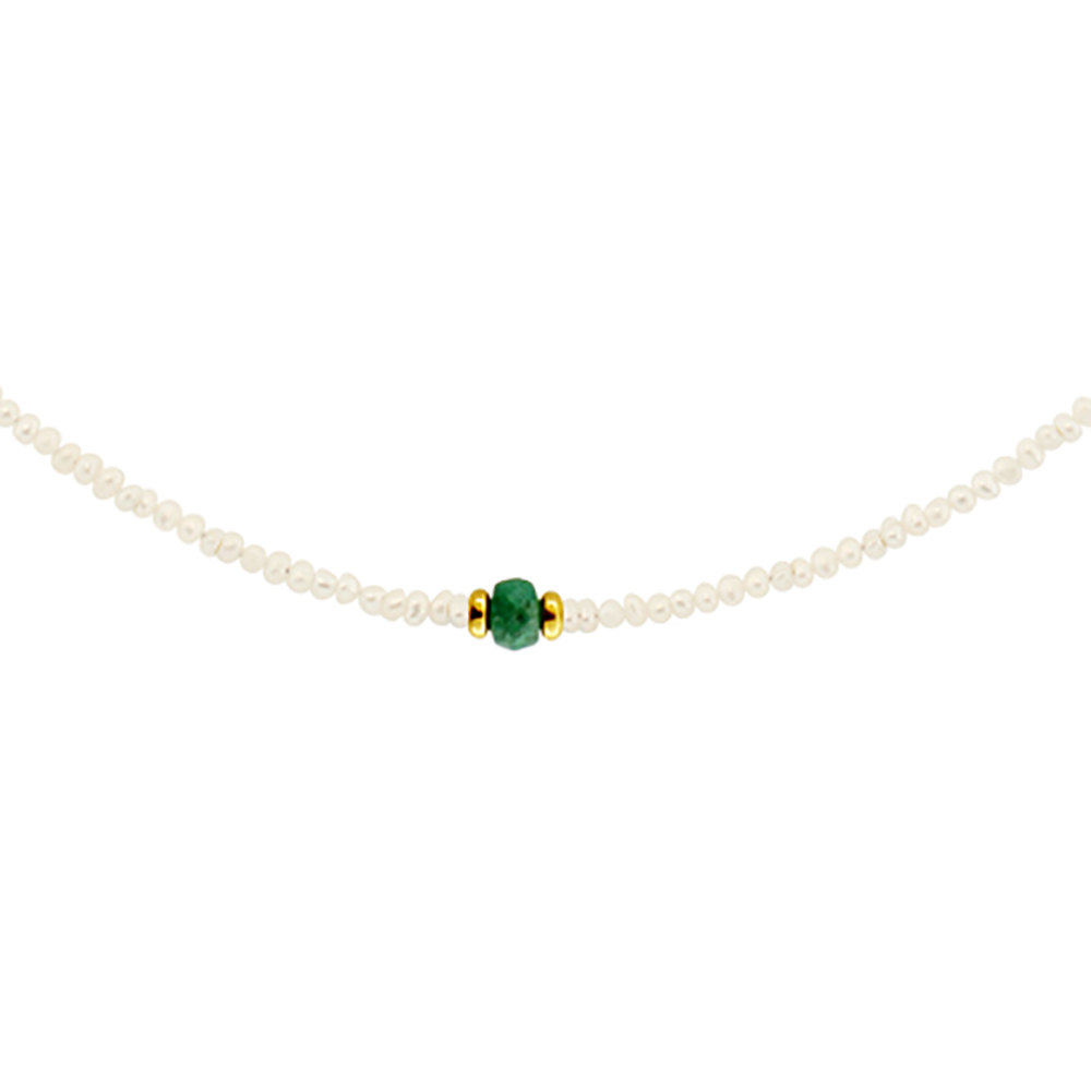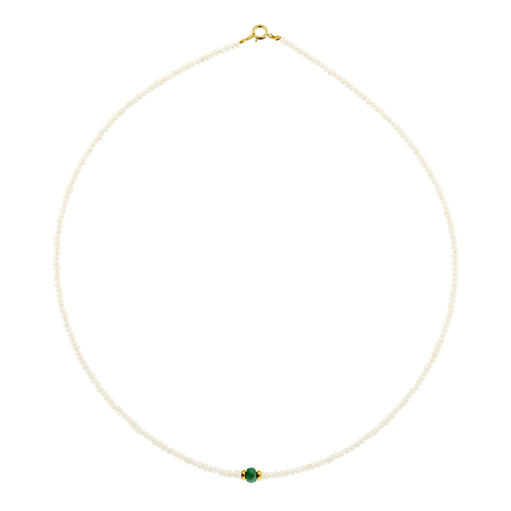 Κολιέ με Κ14 χρυσό κούμπωμα, λευκά μαργαριτάρια και σμαράγδι - M122429E
