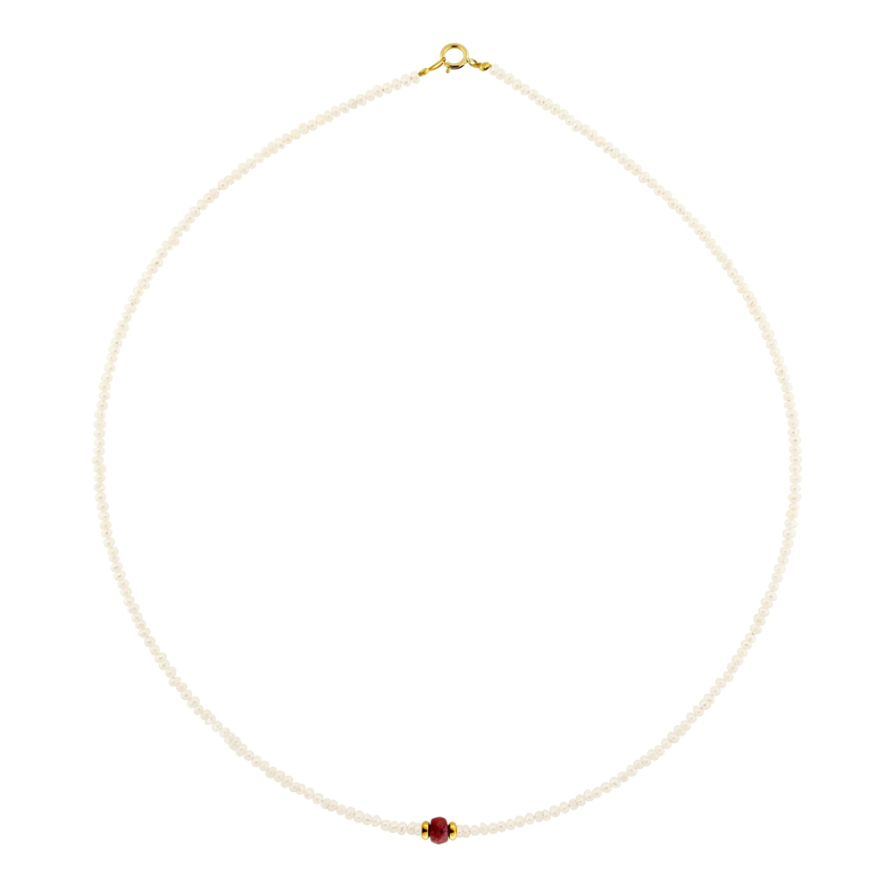 Κολιέ με Κ14 χρυσό κούμπωμα, λευκά μαργαριτάρια και ρουμπίνι - M122429R