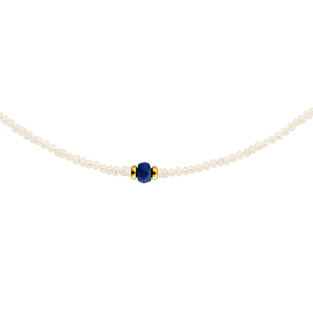 Κολιέ με Κ14 χρυσό κούμπωμα, λευκά μαργαριτάρια και ζαφείρι - M122429S