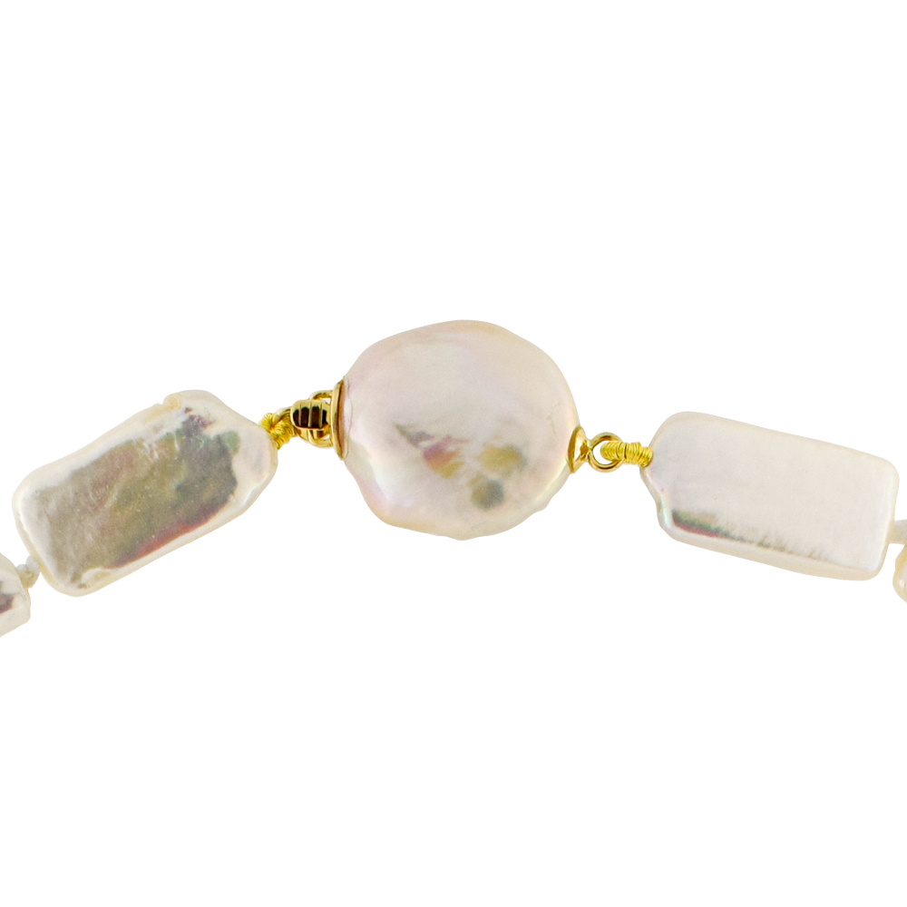 • Ένα υπέροχο κολιέ από εντυπωσιακά φυσικά και σπάνια λευκά μαργαριτάρια Biwa Fresh Water Pearl διαμέτρου 9x18 χιλιοστών.