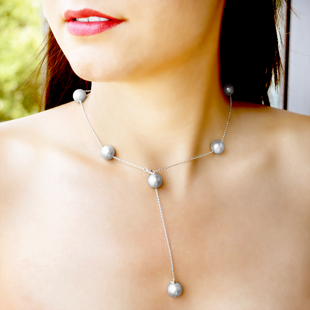 • Ένα φανταστικό κολιέ με εντυπωσιακά γκρι μαργαριτάρια Fresh Water Pearl διαμέτρου από 11,0 - 12,0 χιλιοστά, άριστης ποιότητας.