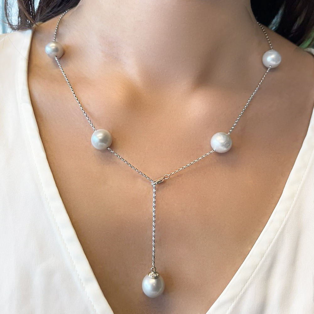 Κολιέ με μαργαριτάρια σε λευκόχρυση αλυσίδα Κ18 - M122850