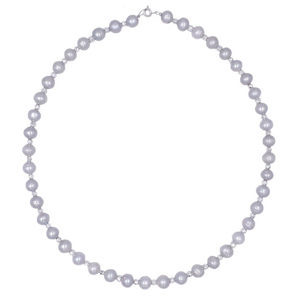 Κολιέ με γκρι μαργαριτάρια, αιματίτη και ασημένιο κούμπωμα 925 - M123897