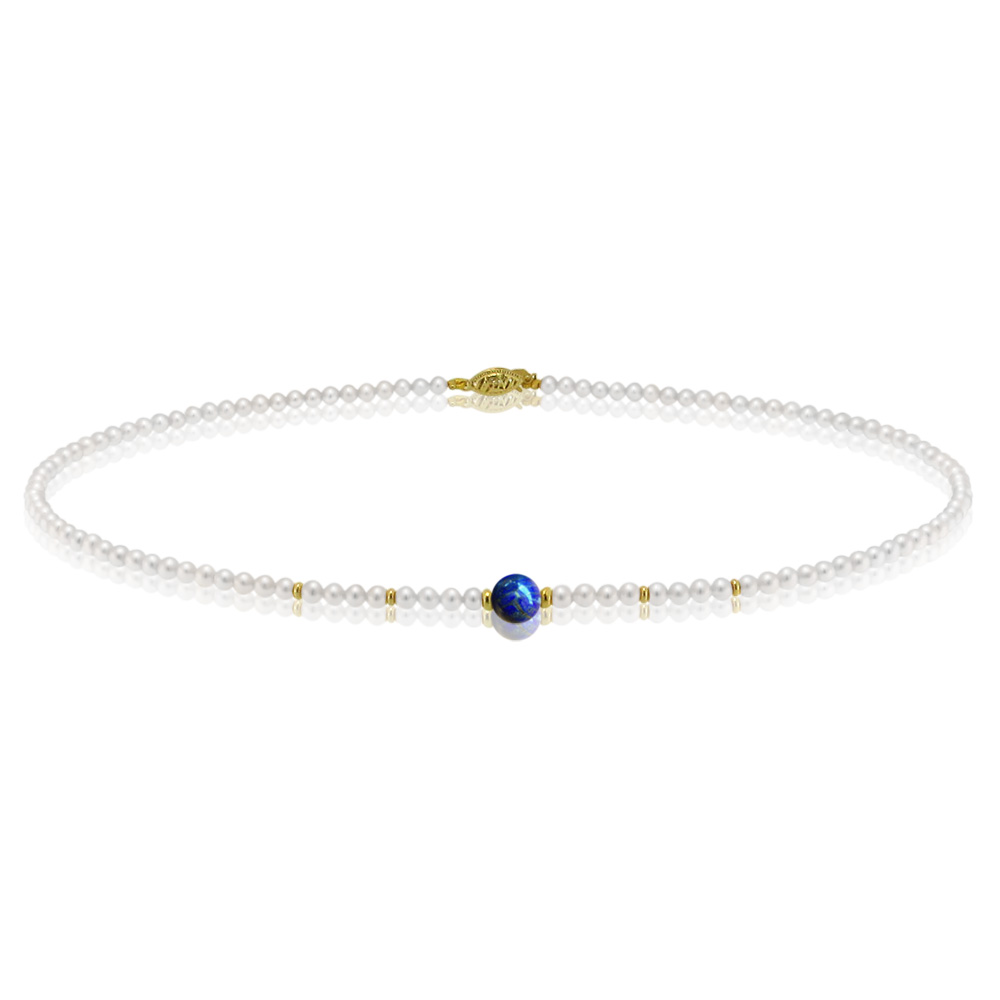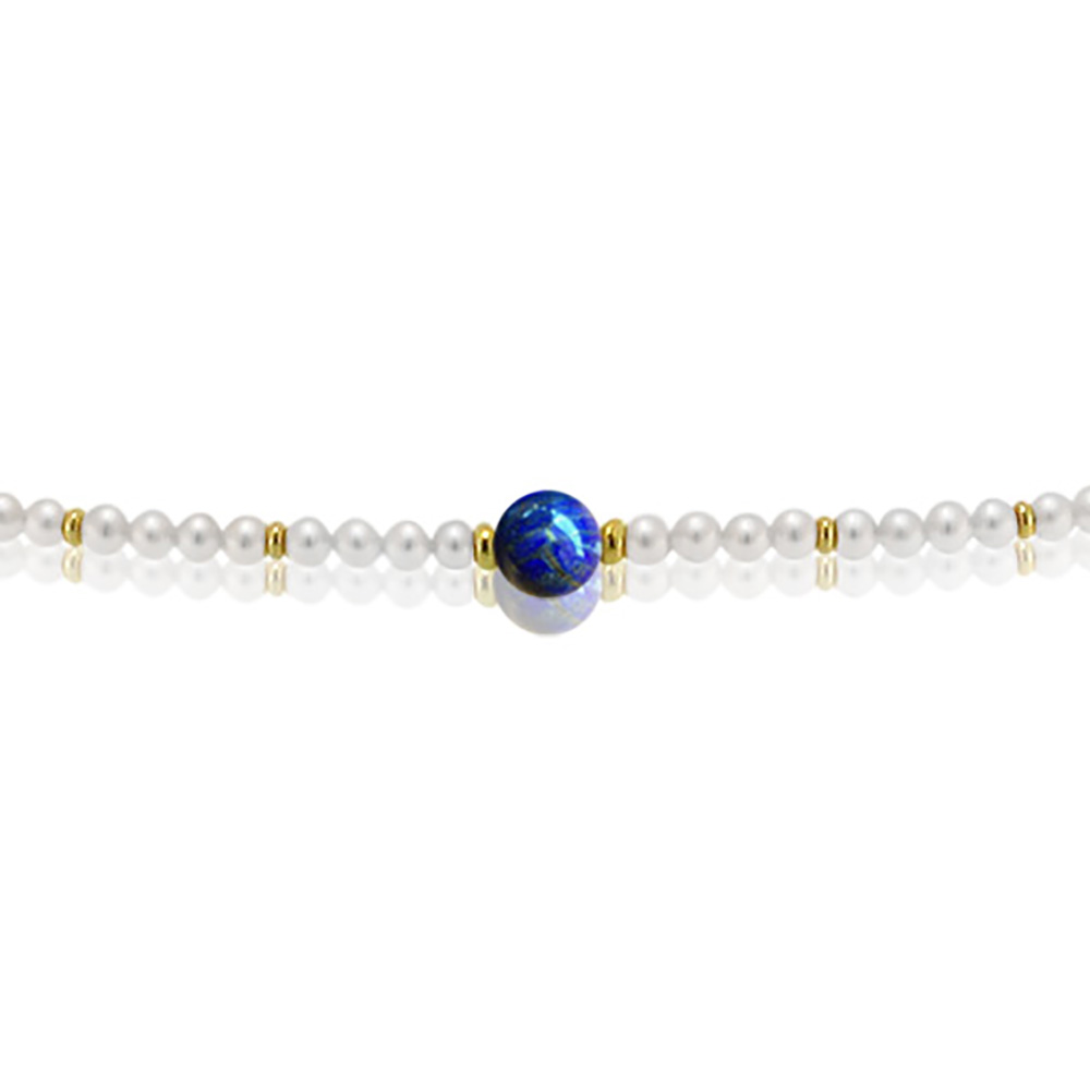 Κολιέ με Κ14 χρυσά στοιχεία, λευκά μαργαριτάρια και λάπις λάζουλι - M417009L