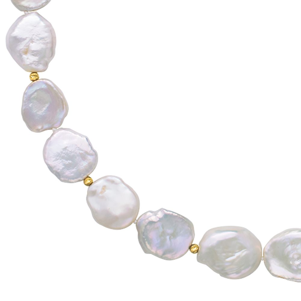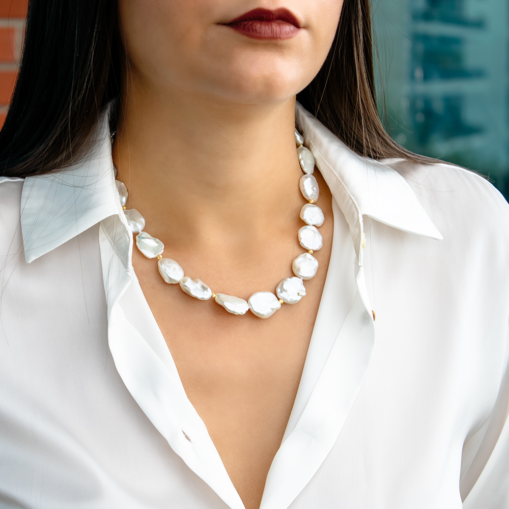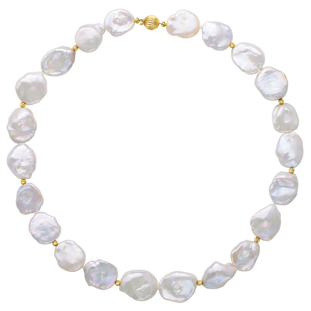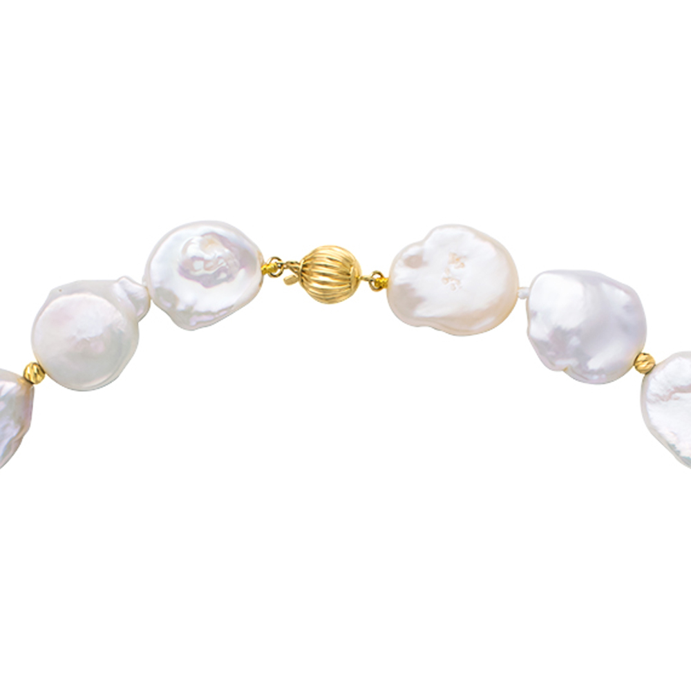 • Ένα υπέροχο και μοναδικό κολιέ με φυσικά ακανόνιστα λευκά μαργαριτάρια Biwa Fresh Water Pearl διαμέτρου 15x18 χιλιοστών σε σχήμα Baroque.