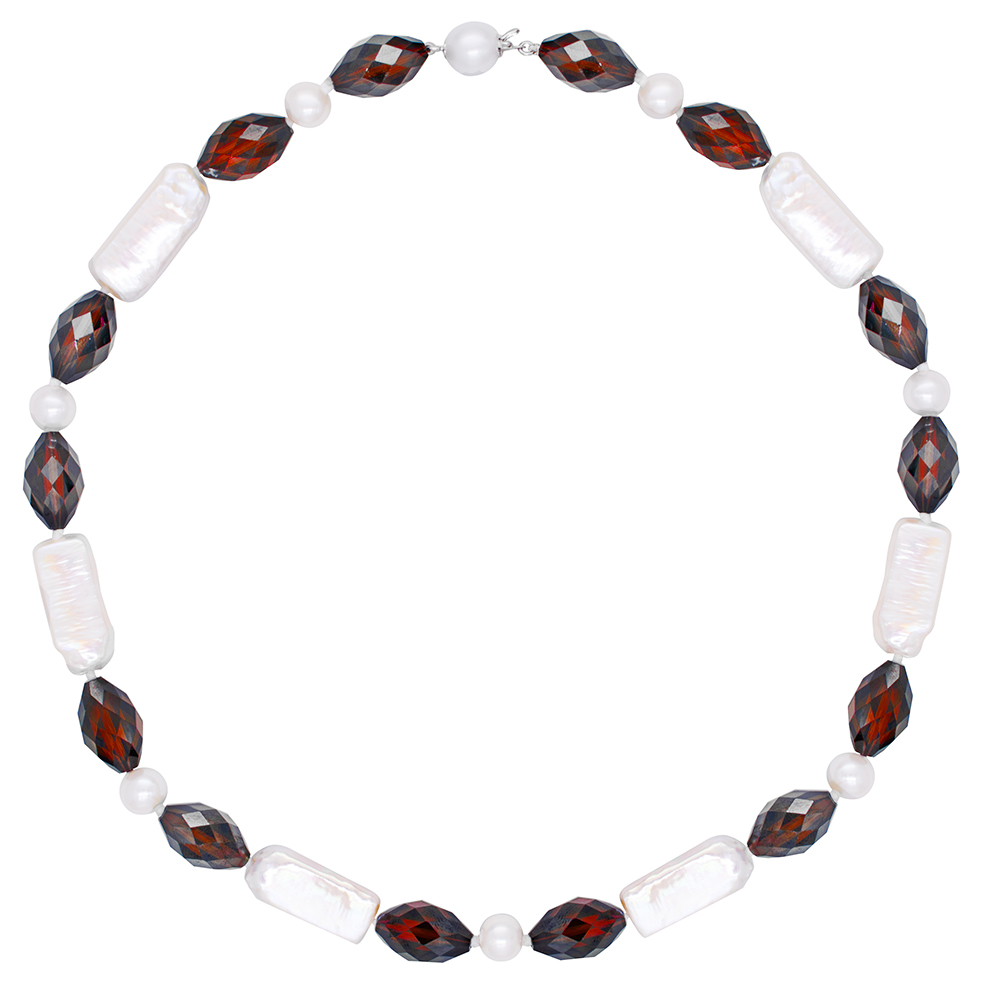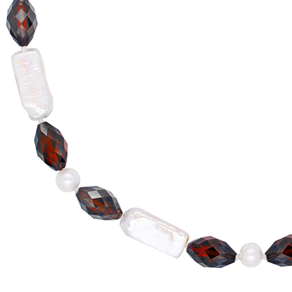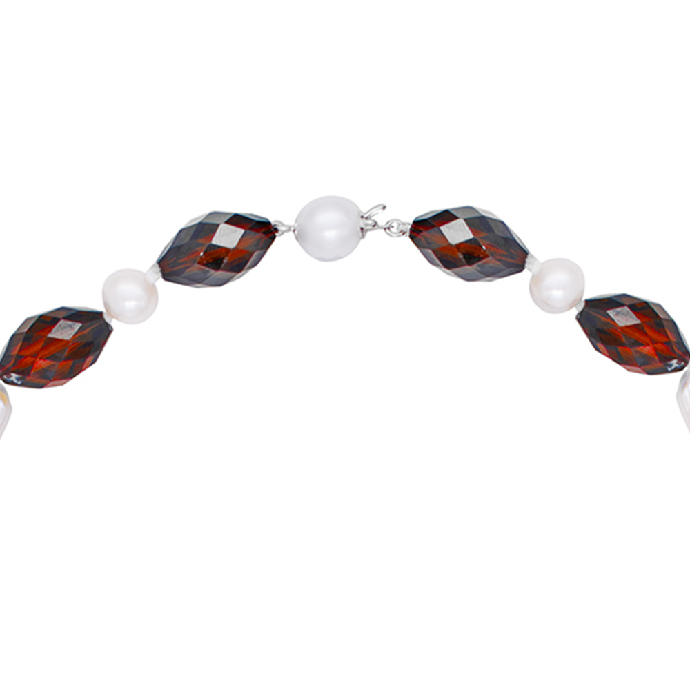 Κολιέ με λευκά μαργαριτάρια, γρανάδα και κούμπωμα μαργαριτάρι - S124721G