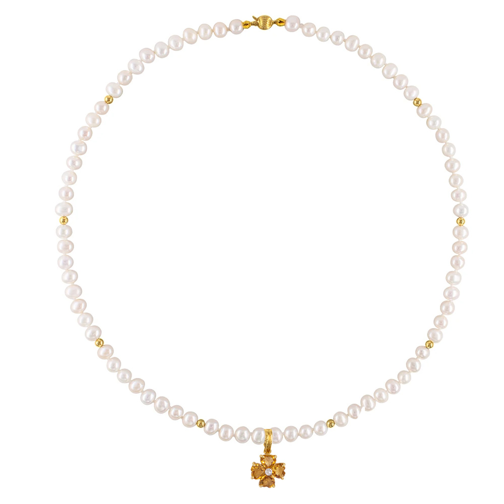 Κολιέ με Κ14 χρυσά στοιχεία και μαργαριτάρια και Κ18 χρυσό μενταγιόν με citrine και διαμάντι - S126451