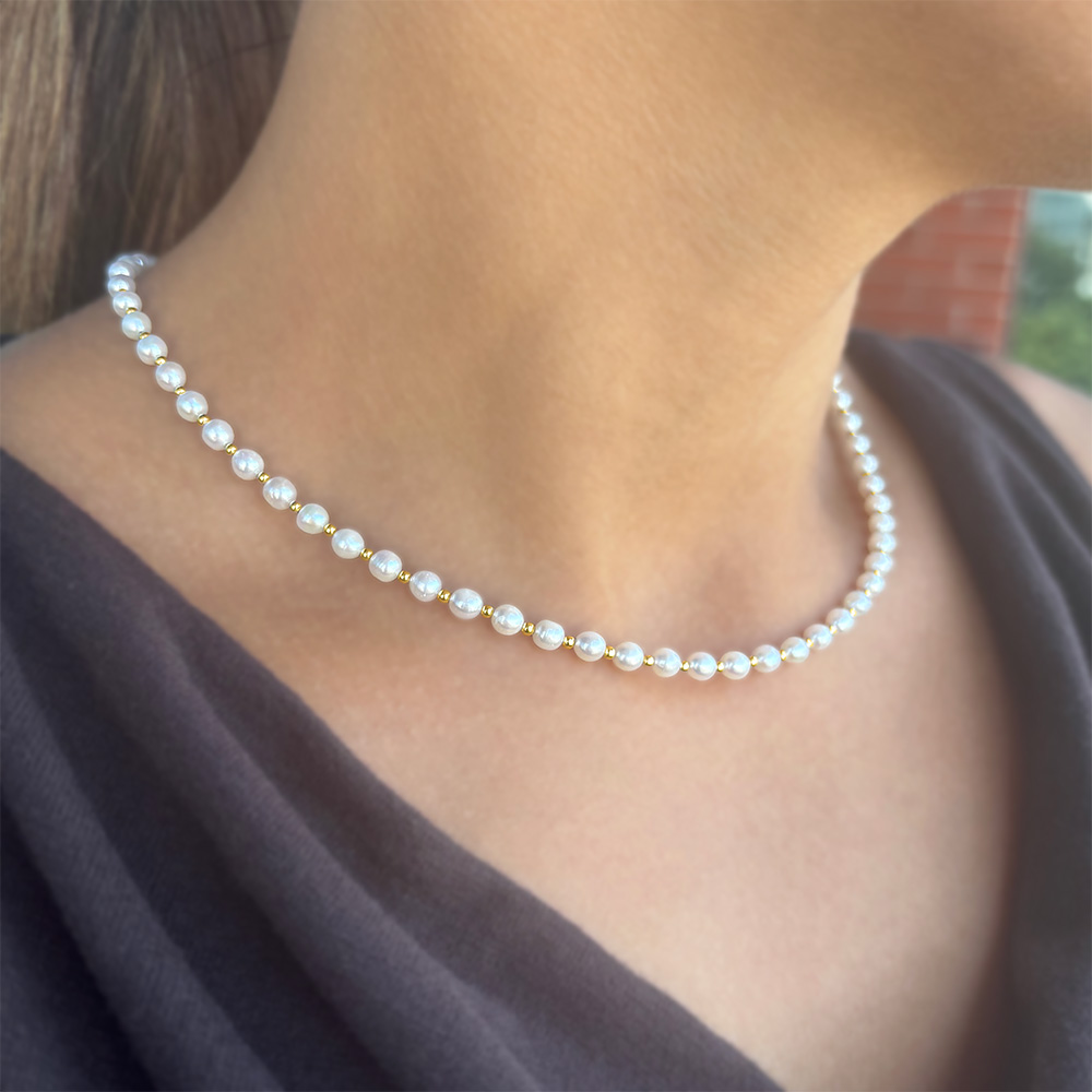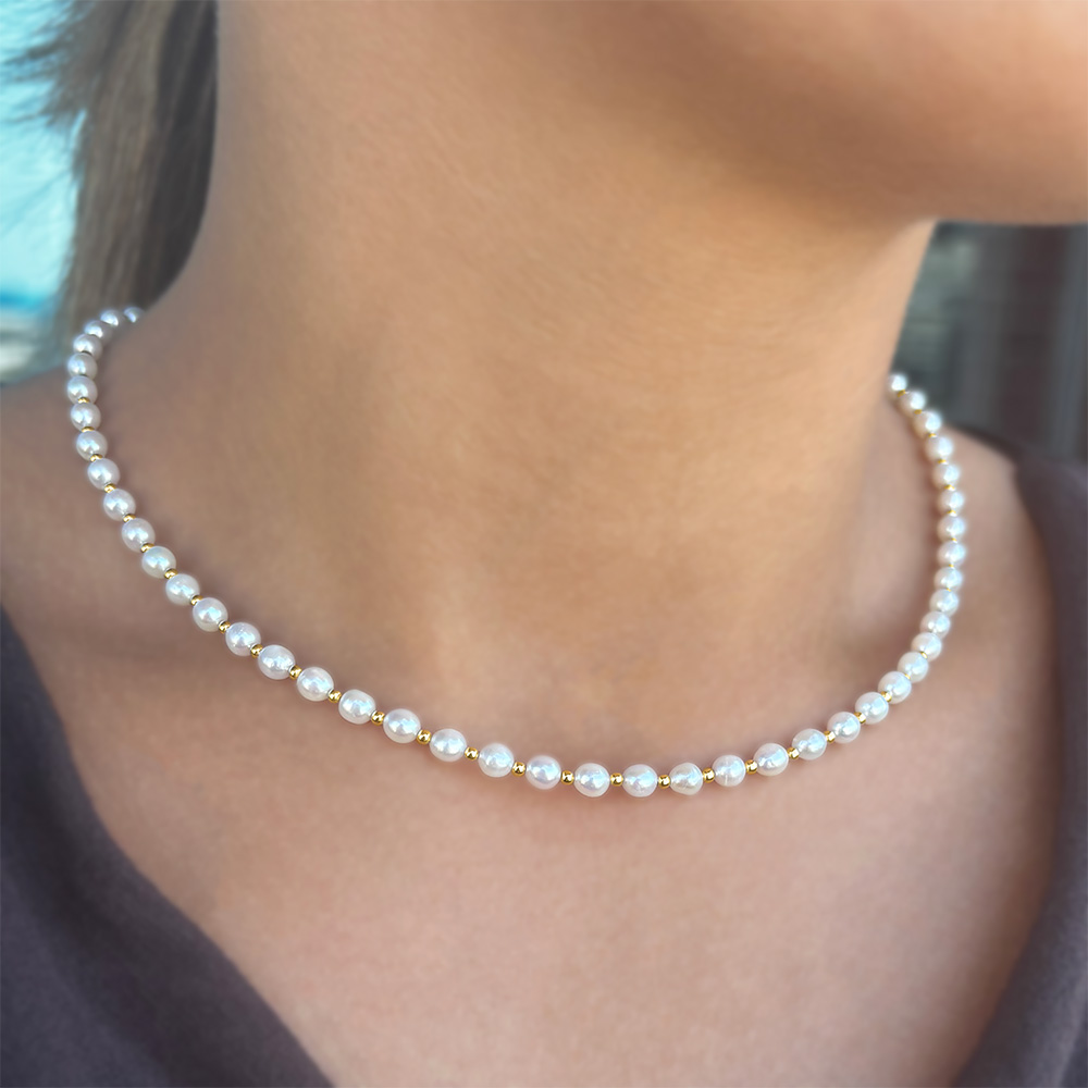 'Ενα διαχρονικό κολιέ που συνδυάζει την κλασική ομορφιά των μαργαριταριών με τη λάμψη του χρυσού, που θα λατρέψετε να φοράτε.
