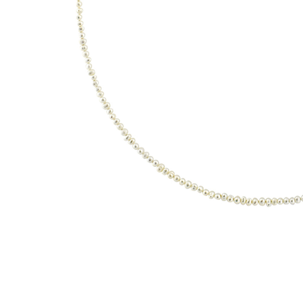 • Ένα υπέροχο κολιέ από λευκά μαργαριτάρια γλυκού νερού Fresh Water Pearl διαμέτρου 2-3 χιλιοστών.