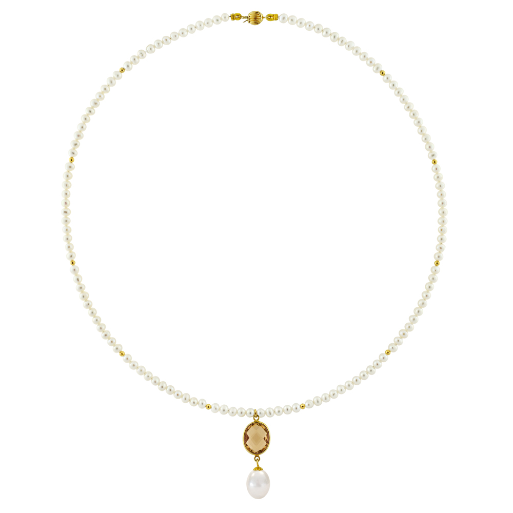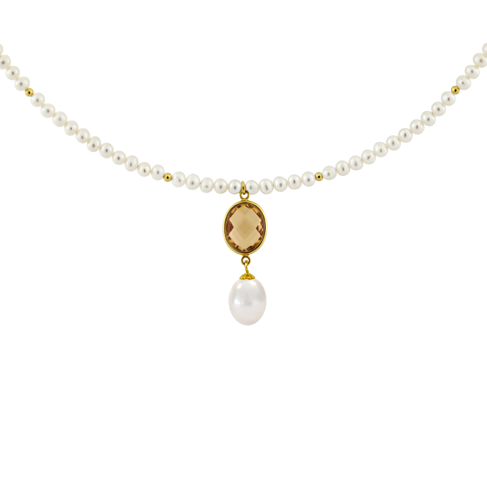 Κολιέ με Κ14 χρυσό κούμπωμα, λευκά μαργαριτάρια και μενταγιόν citrine - M122702C