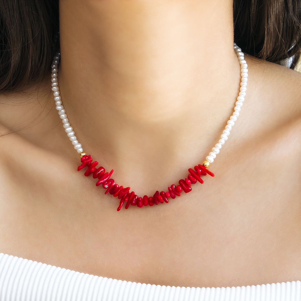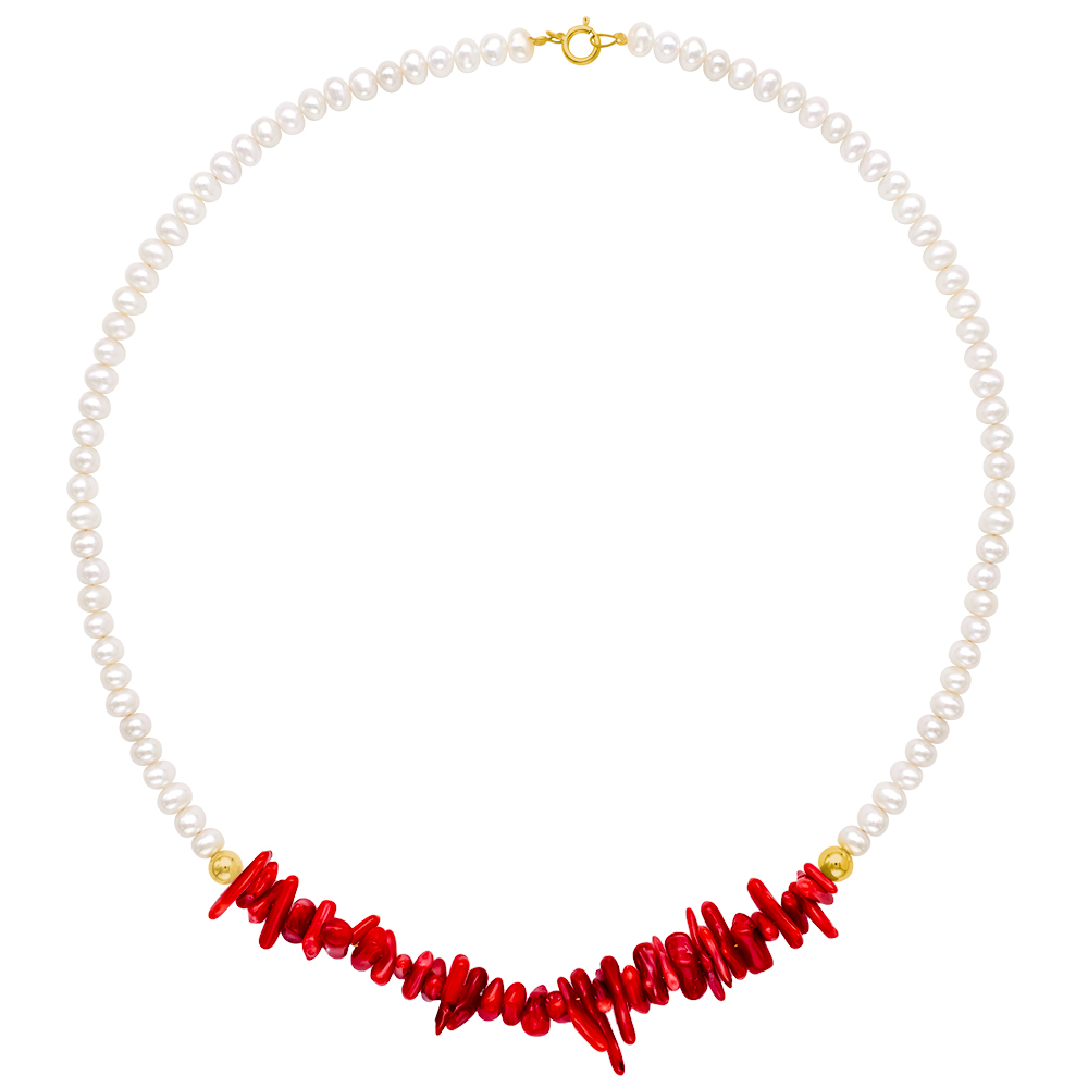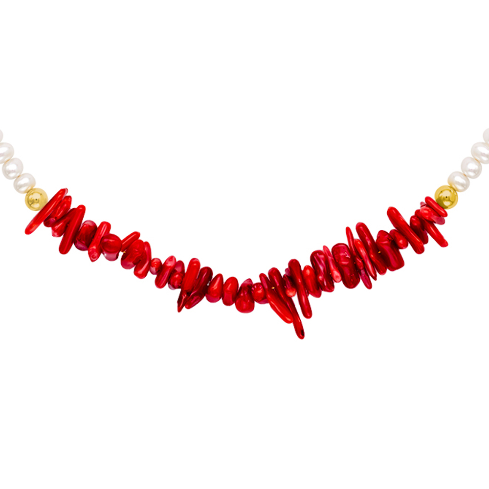 -18% Κολιέ με Κ14 κούμπωμα, μαργαριτάρια και κοράλλια - F124385