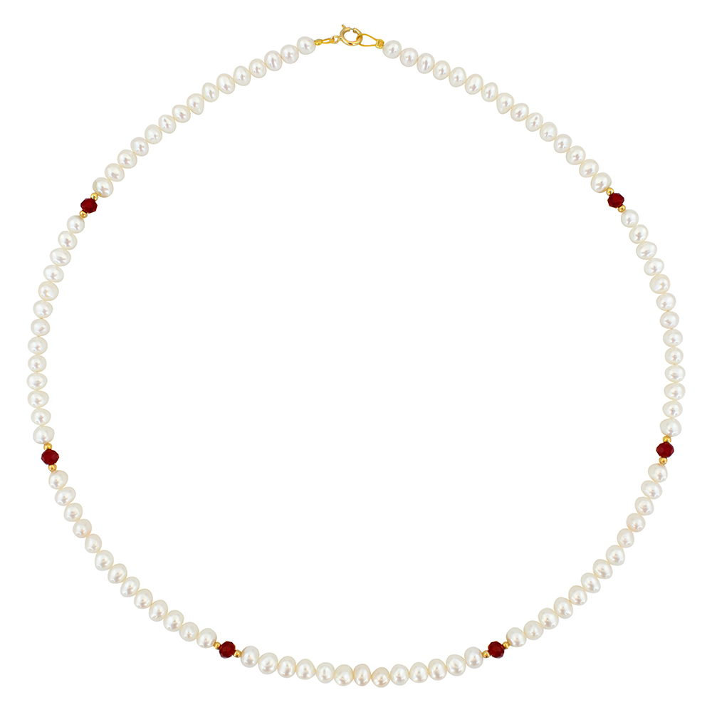 Κολιέ με Κ14 χρυσά στοιχεία, λευκά μαργαριτάρια και ζιργκόν - S123983R