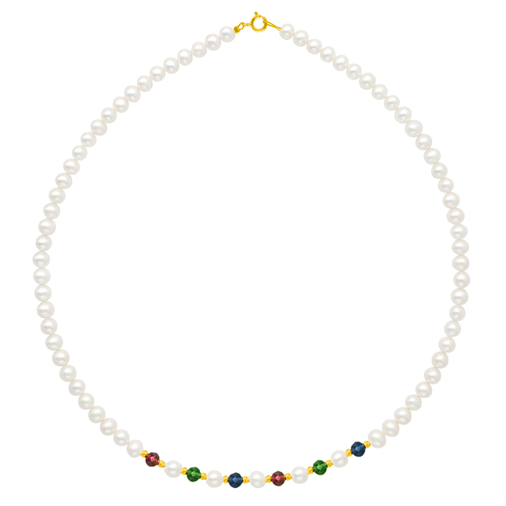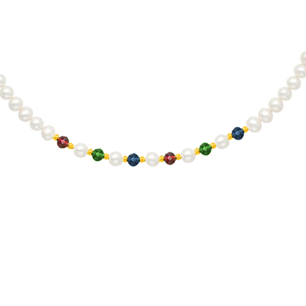 -21% Κολιέ με Κ14 χρυσά στοιχεία, λευκά μαργαριτάρια και πολύχρωμα ζιργκόν - S123983M