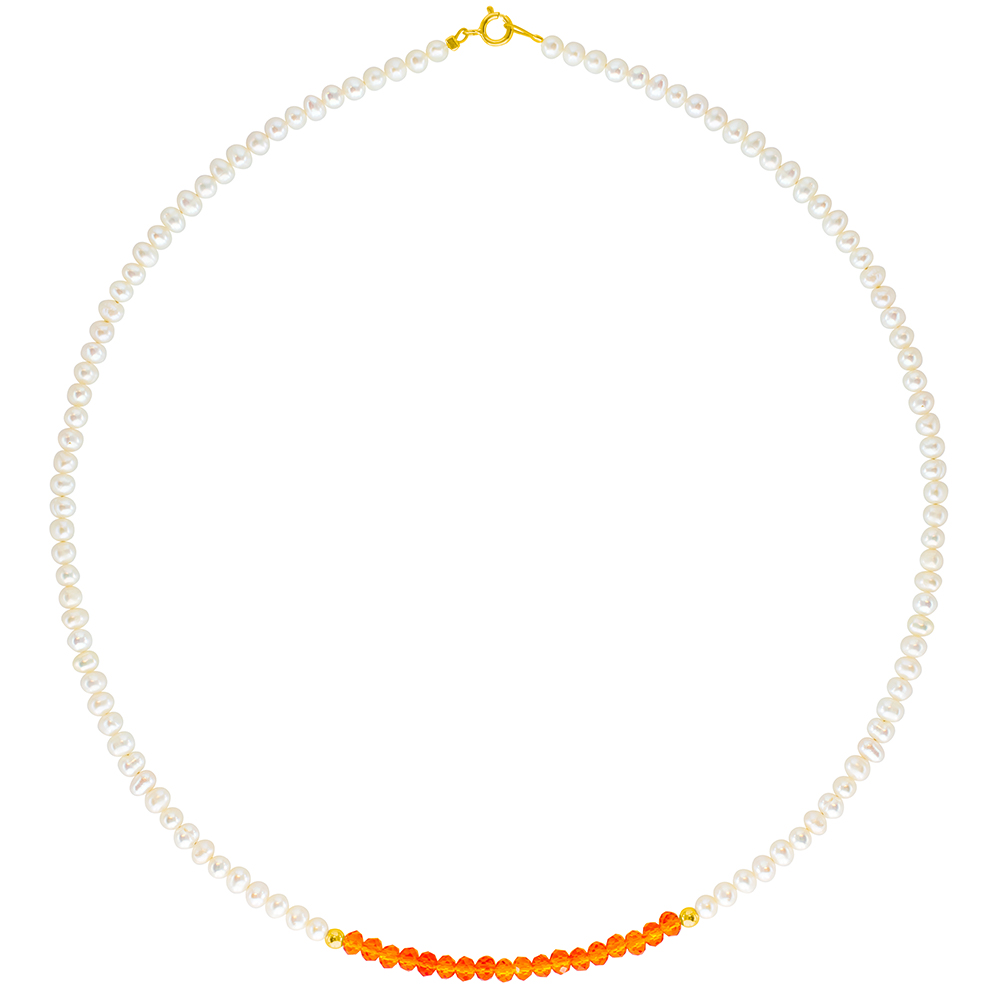 -18% Κολιέ με Κ14 χρυσά στοιχεία και μαργαριτάρια - F124337