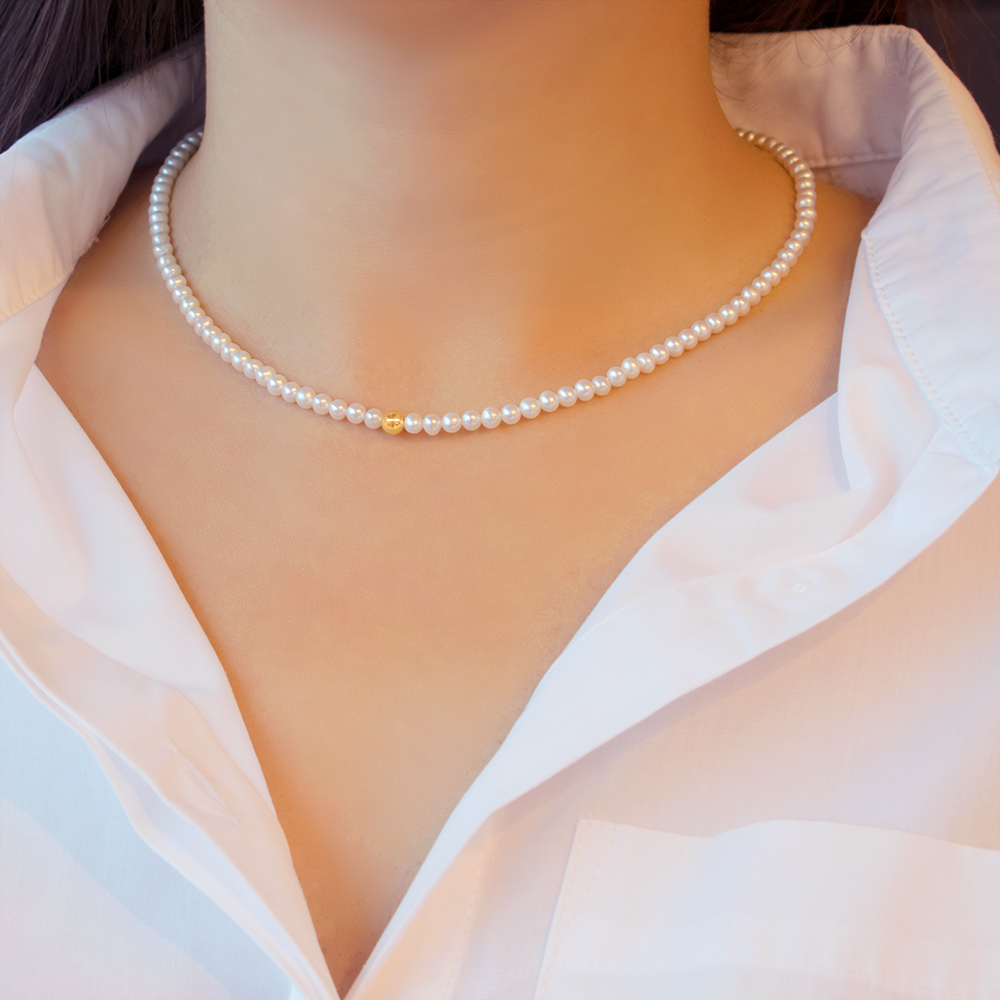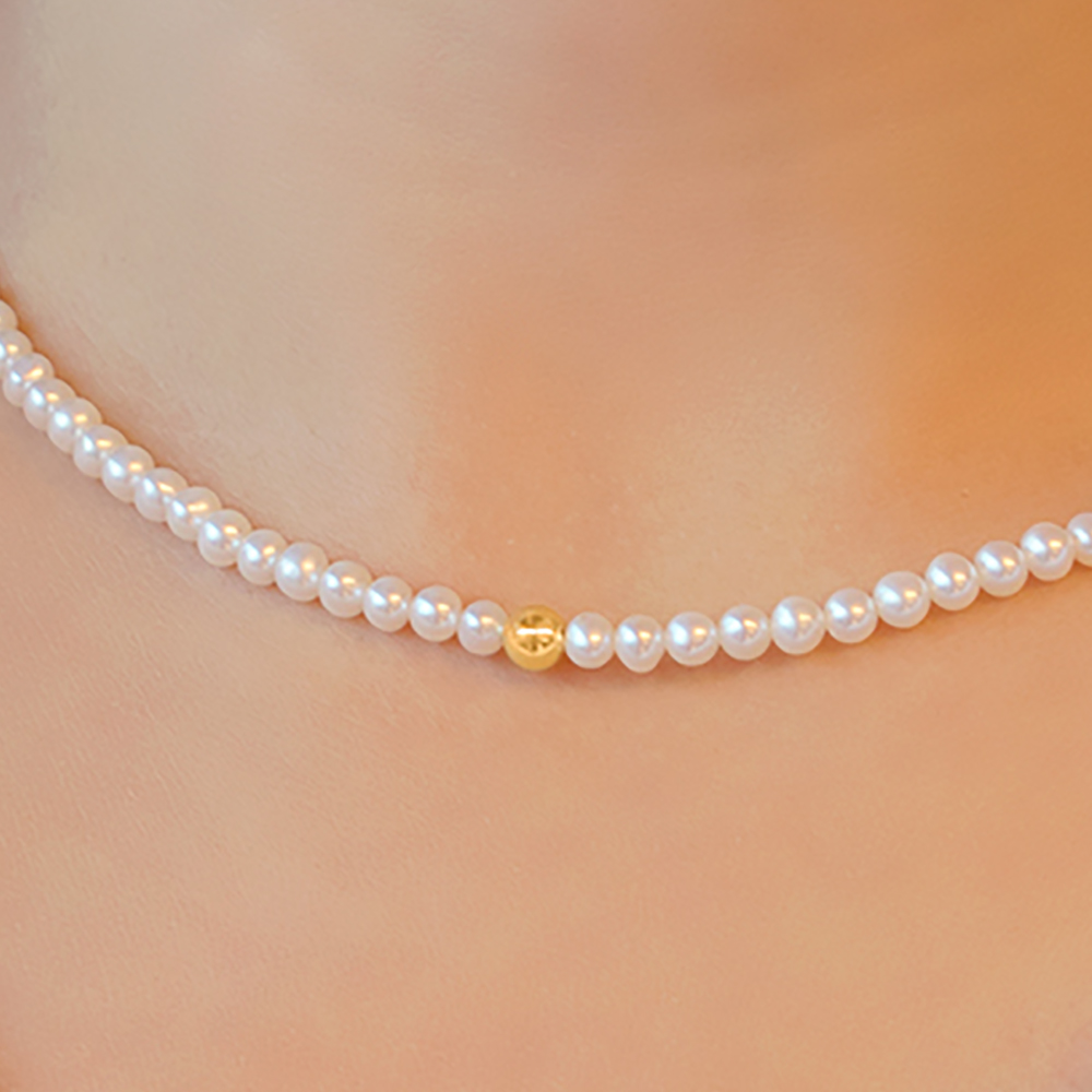 • Ένα υπέροχο κολιέ με μαργαριτάρια γλυκού νερού Fresh Water Pearl διαμέτρου 4-4,5 χιλιοστών.