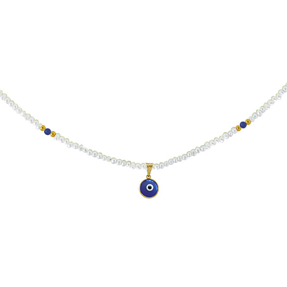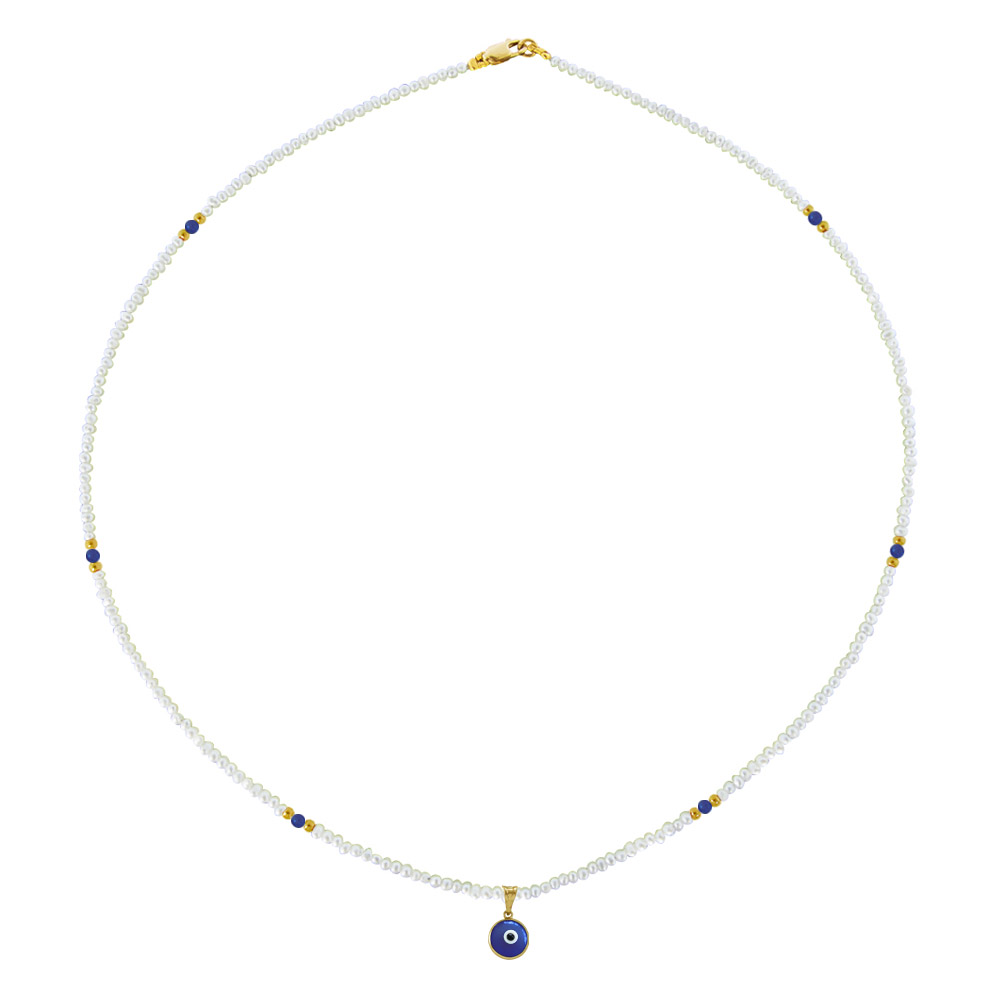 Κολιέ με λευκά μαργαριτάρια και λάπις λάζουλι - M320011B