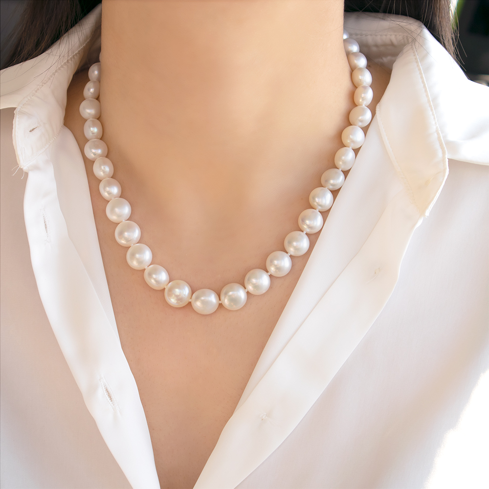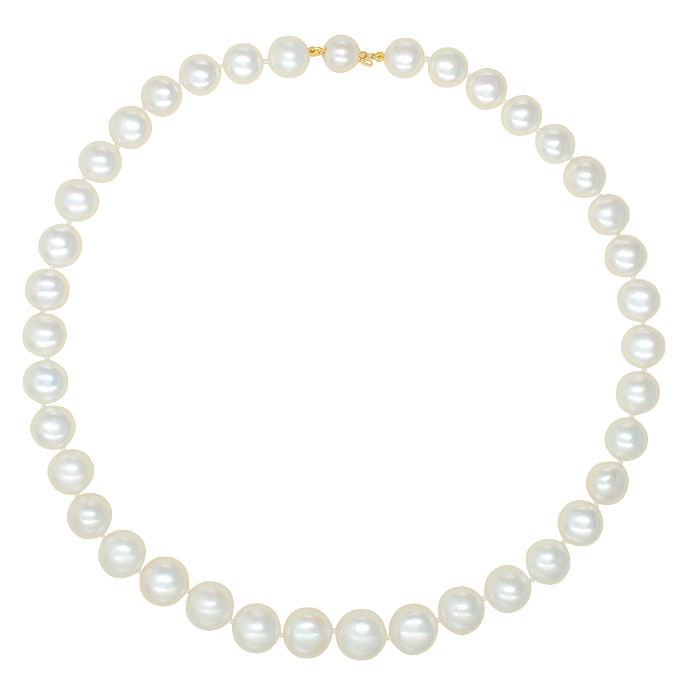 • Ένα υπέροχο κολιέ με λευκά μαργαριτάρια Fresh Water Pearl διαμέτρου 9-14 χιλιοστών σε σχήμα Coin (νόμισμα).