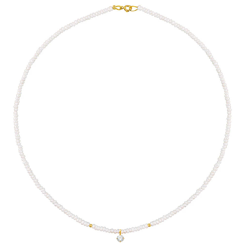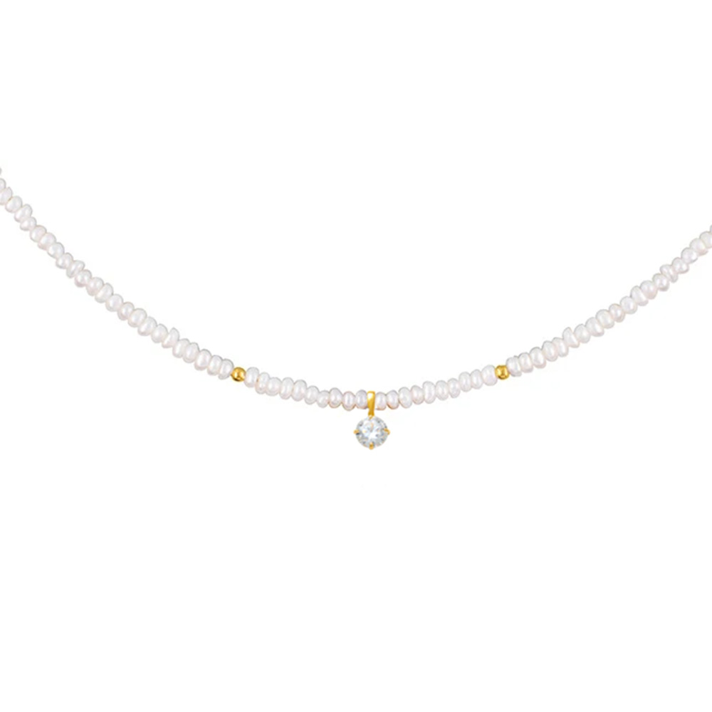 Κολιέ με Κ14 χρυσό κούμπωμα, λευκά μαργαριτάρια και μενταγιόν με ζιργκόν - S126436