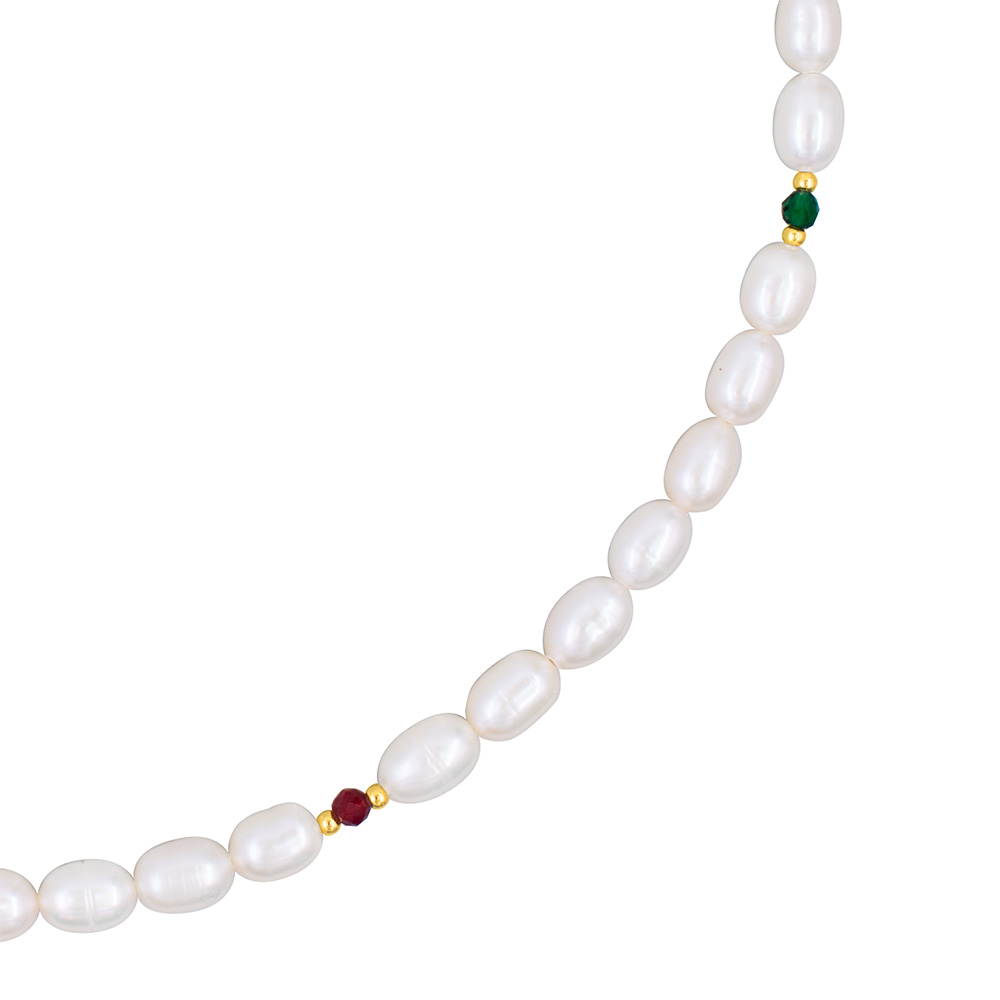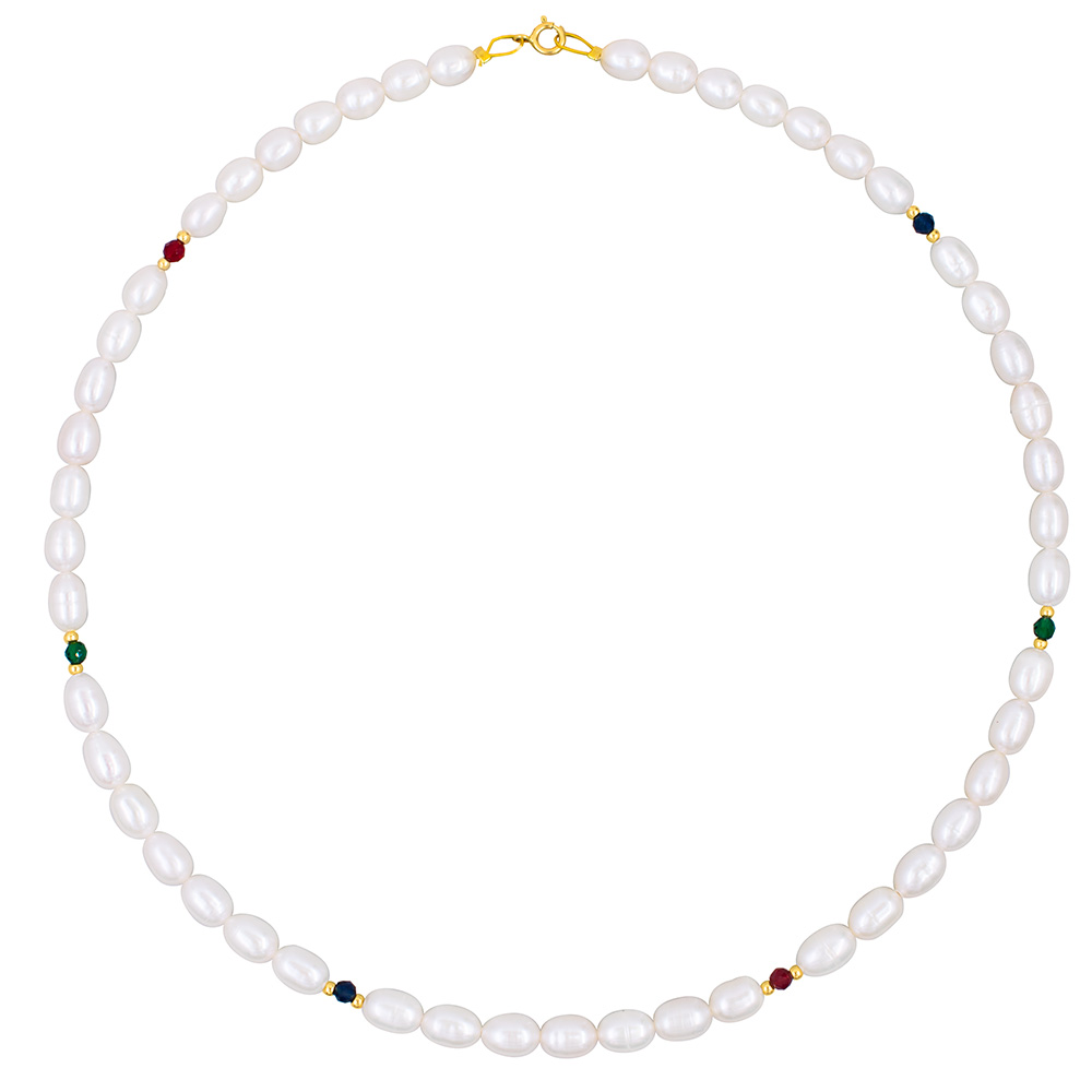 • Ένα υπέροχο κολιέ με λευκά μαργαριτάρια Fresh Water Pearl διαμέτρου 5x7 χιλιοστών.