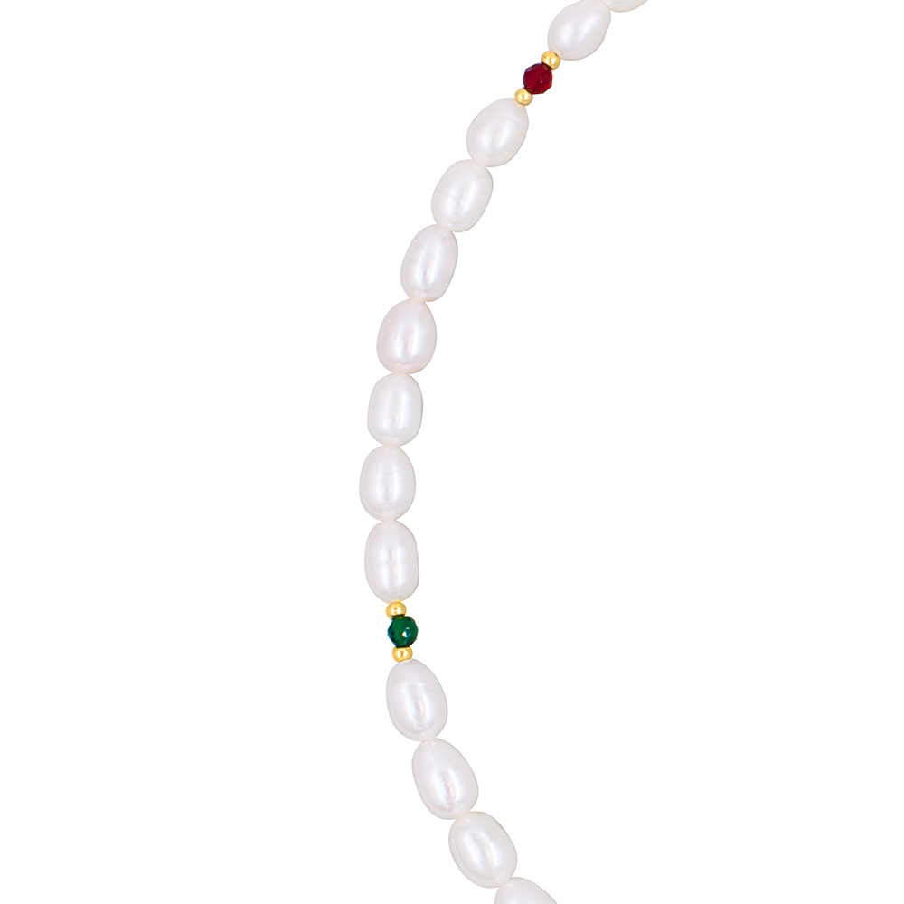 -14% Κολιέ με Κ14 χρυσά στοιχεία, λευκά μαργαριτάρια και ζιργκόν - F126076