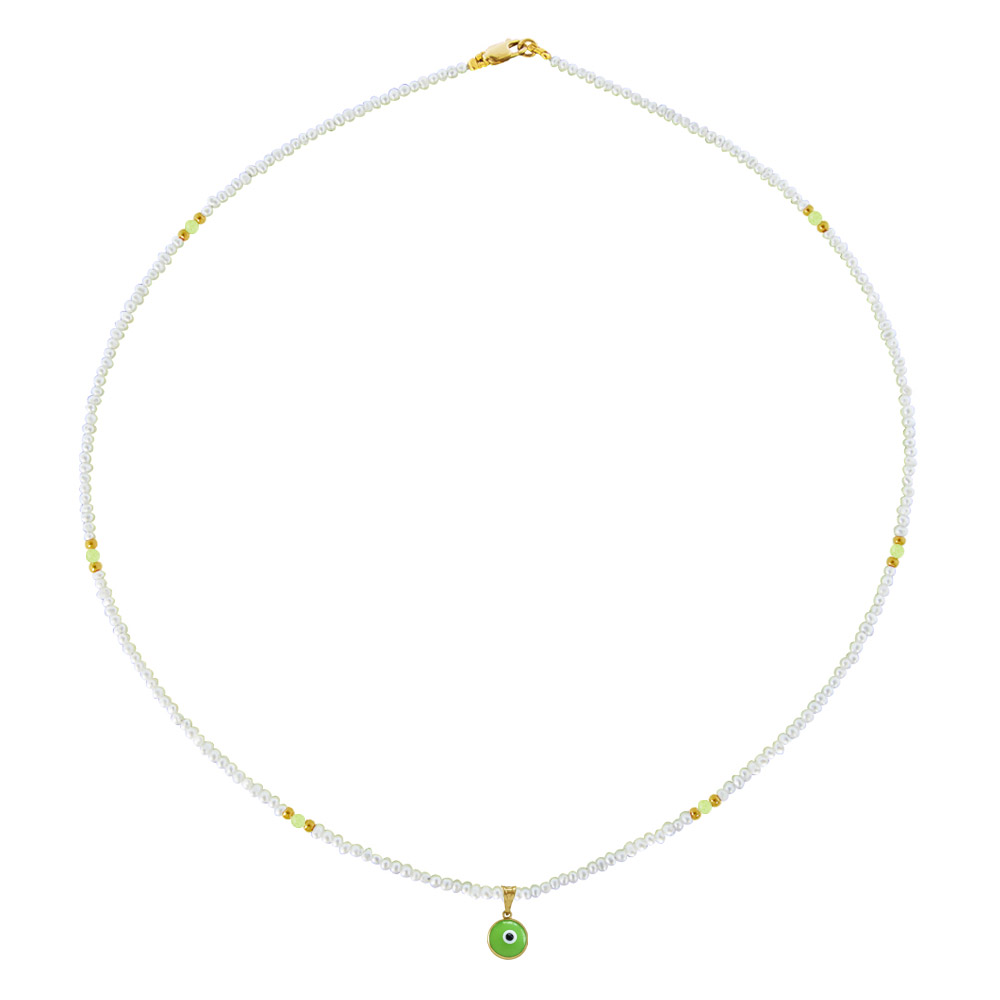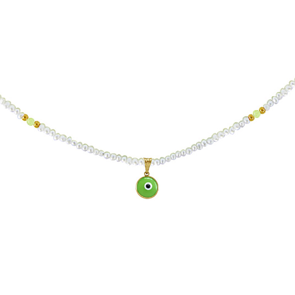 Κολιέ με λευκά μαργαριτάρια, περίδοτο και χρυσά στοιχεία 14K - M320011G