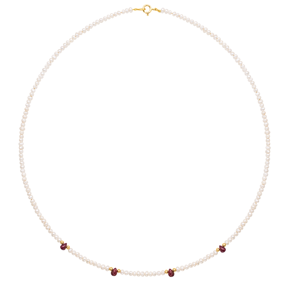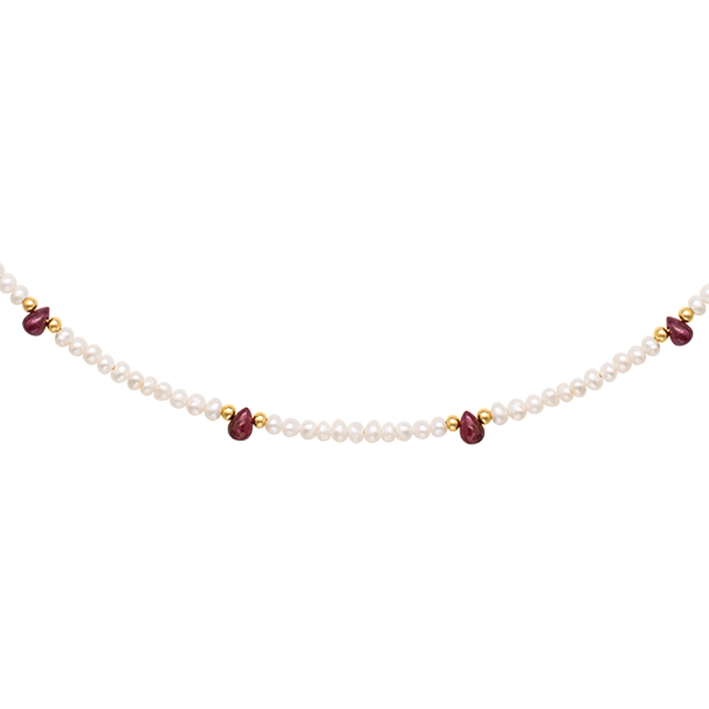 Κολιέ με Κ14 χρυσά στοιχεία, μαργαριτάρια και ρουμπίνια - F124460