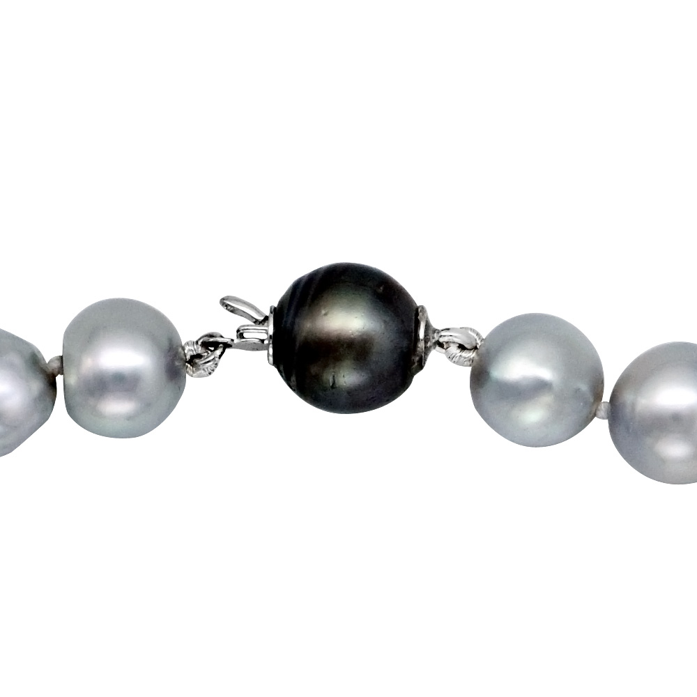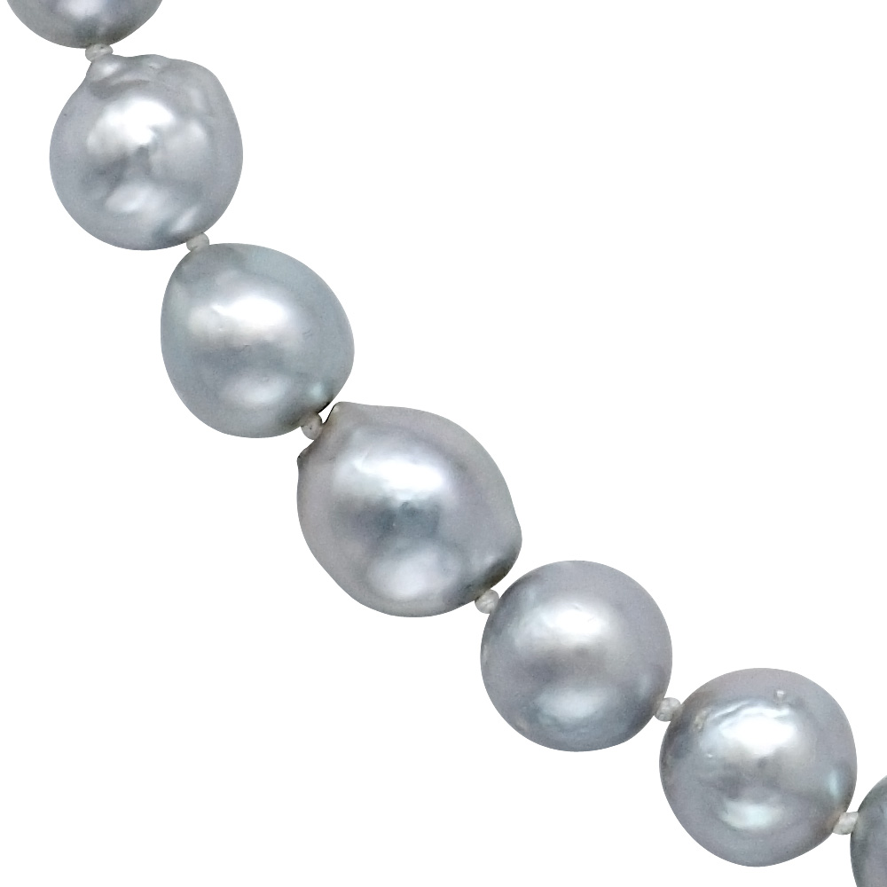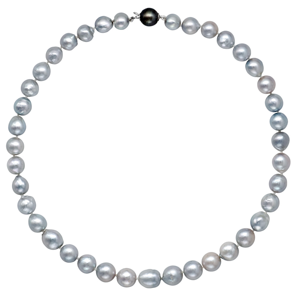 • Ένα μοναδικό κολιέ από 39 σπάνια και εντυπωσιακά φυσικά γκρι μαργαριτάρια South Sea Tahiti διαμέτρου από 9,0 έως 11,0 χιλιοστά, άριστης ποιότητας σε σχήμα Baroque και βάρους 15,22 MOMME.