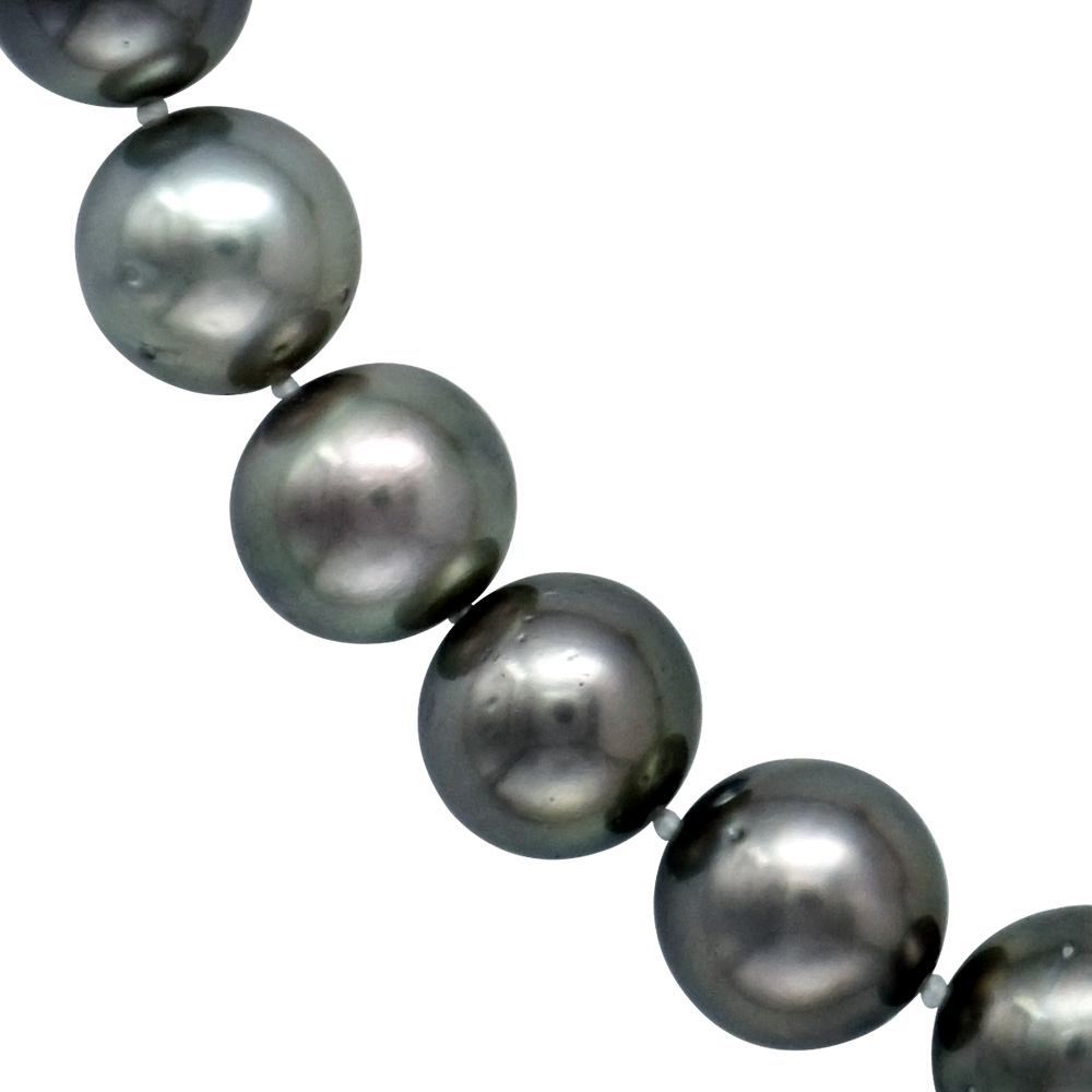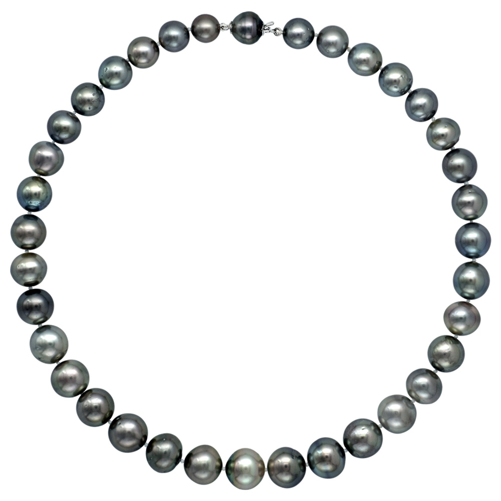 • Ένα μοναδικό κολιέ από 35 σπάνια και εντυπωσιακά φυσικά μαύρα μαργαριτάρια South Sea Tahiti διαμέτρου από 9,4 έως 13,5 χιλιοστών, άριστης ποιότητας σε σχήμα Round (στρόγγυλο) και βάρους 21,63 MOMME.