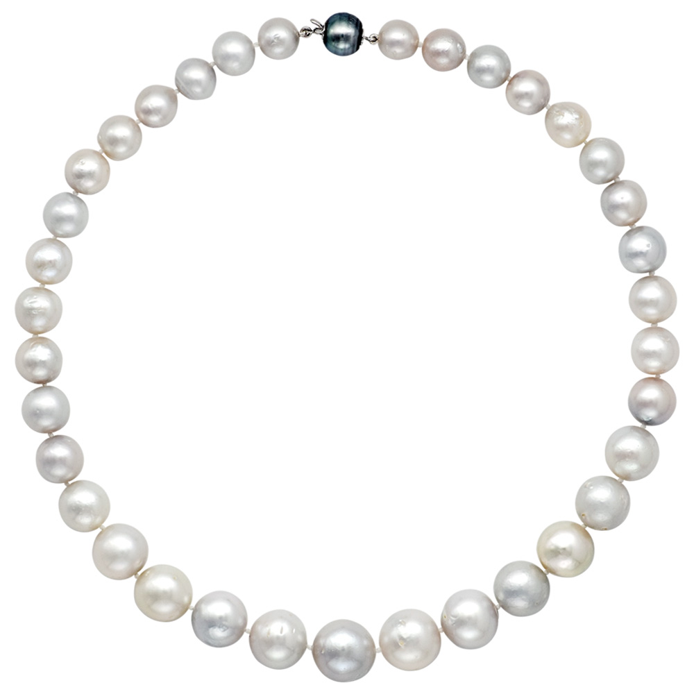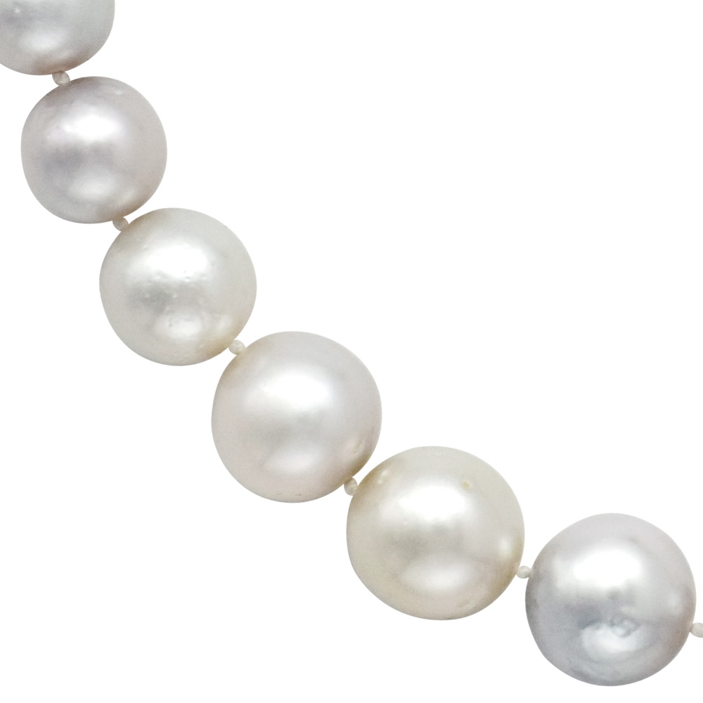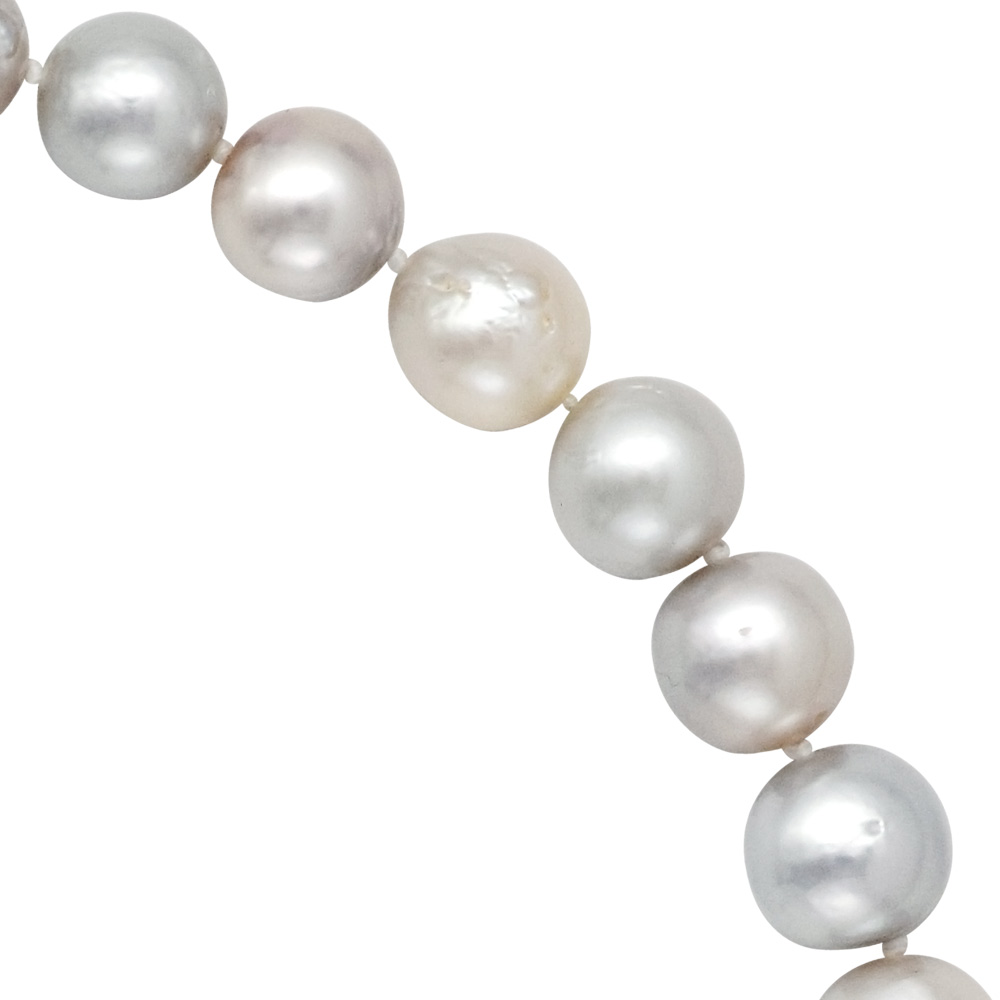 • Ένα μοναδικό κολιέ από 35 σπάνια και εντυπωσιακά φυσικά λευκά μαργαριτάρια South Sea Australia διαμέτρου από 9,5 έως 14,7 χιλιοστά, σε σχήμα Round (στρόγγυλο) άριστης ποιότητας και βάρους 22,25 MOMME.