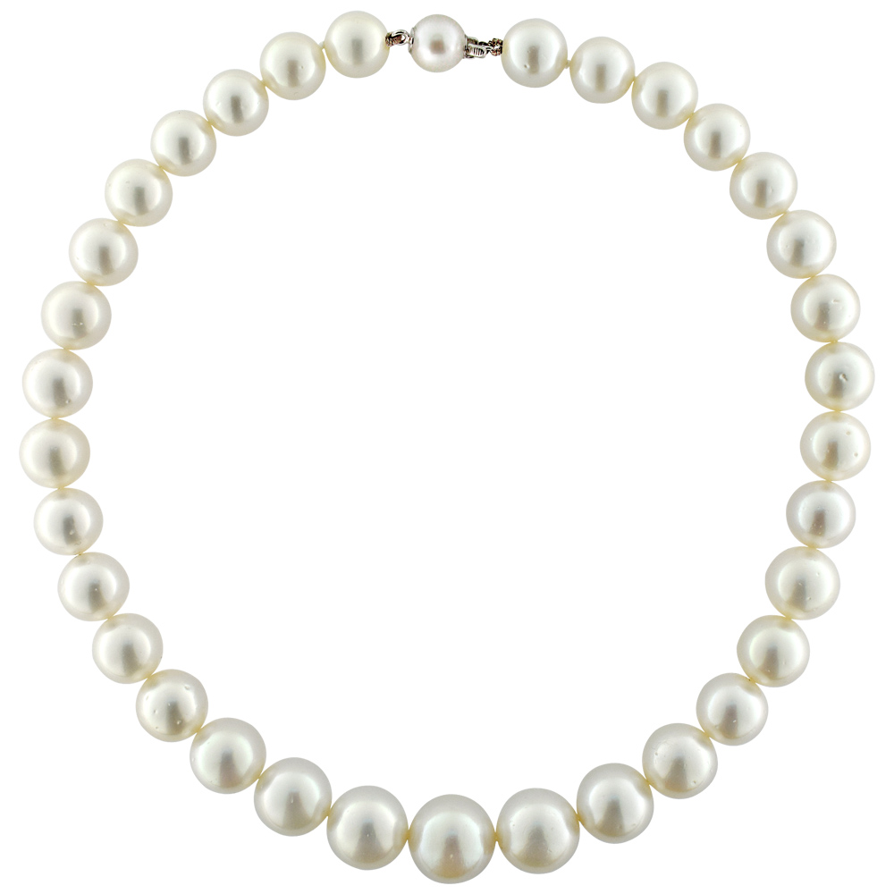• Ένα μοναδικό κολιέ από 33 σπάνια και εντυπωσιακά φυσικά λευκά μαργαριτάρια South Sea Australia διαμέτρου από 12 έως 16 χιλιοστών, σε σχήμα Round (στρόγγυλο) άριστης ποιότητας και βάρους 28,60 MOMME.