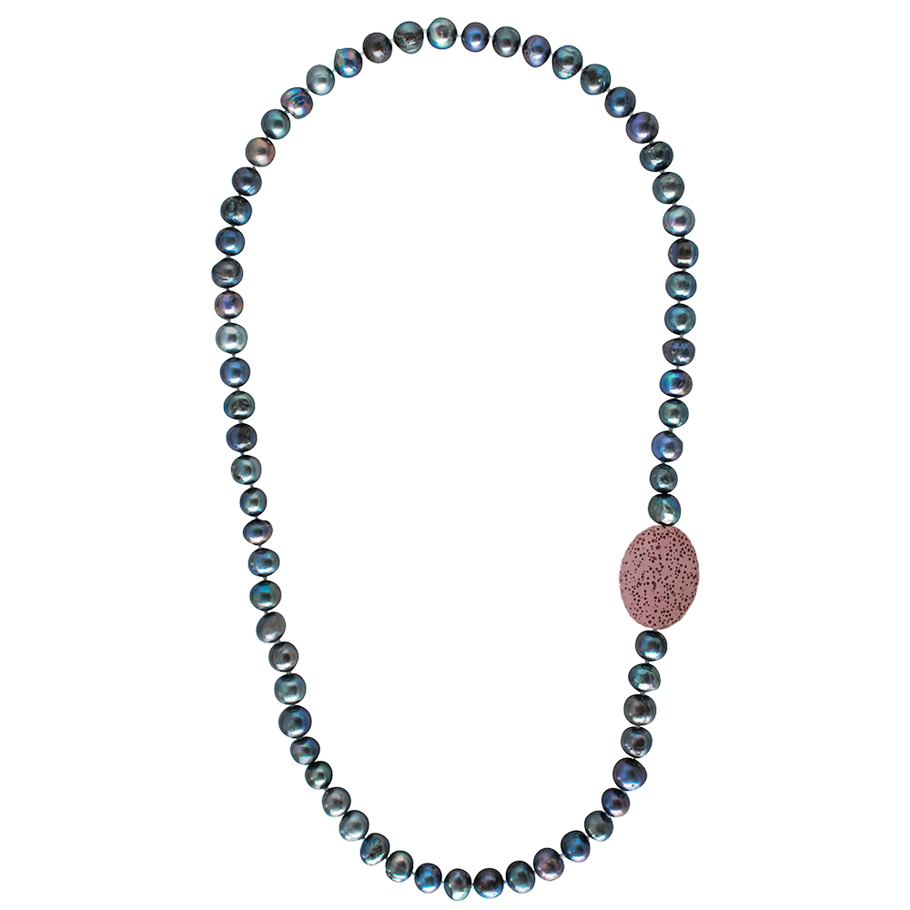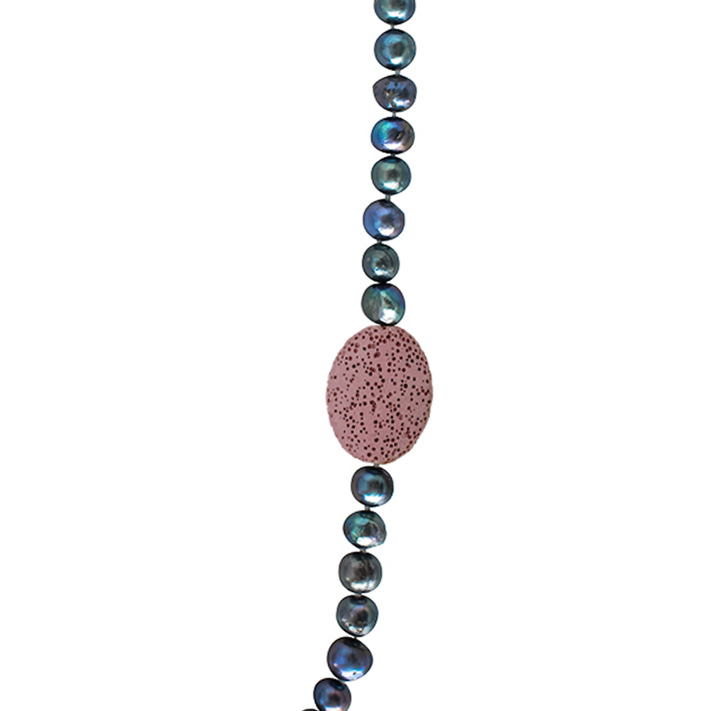 Κολιέ με μαύρα μαργαριτάρια Fresh Water Pearl και Lava - F124283BLR