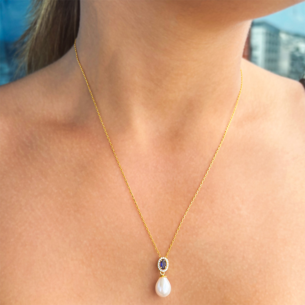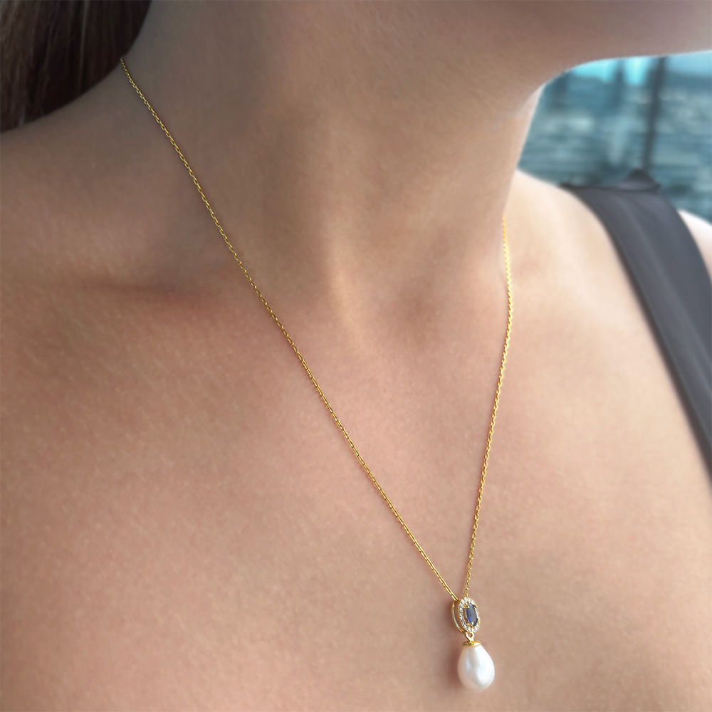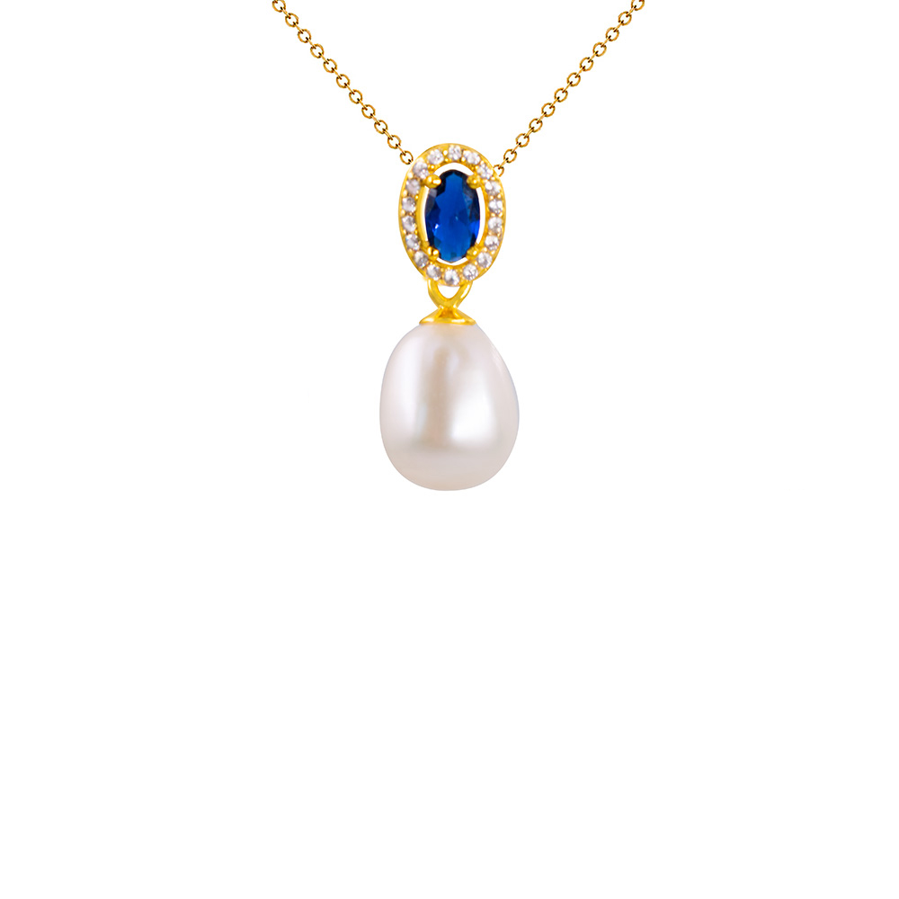 Κολιέ με 925 επιχρυσωμένη αλυσίδα, μαργαριτάρι και ζιργκόν - S126079
