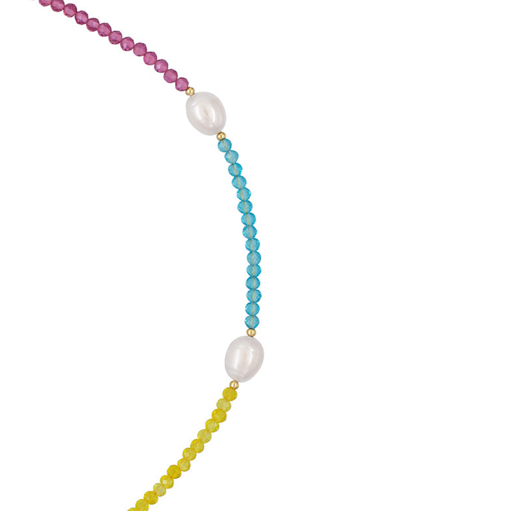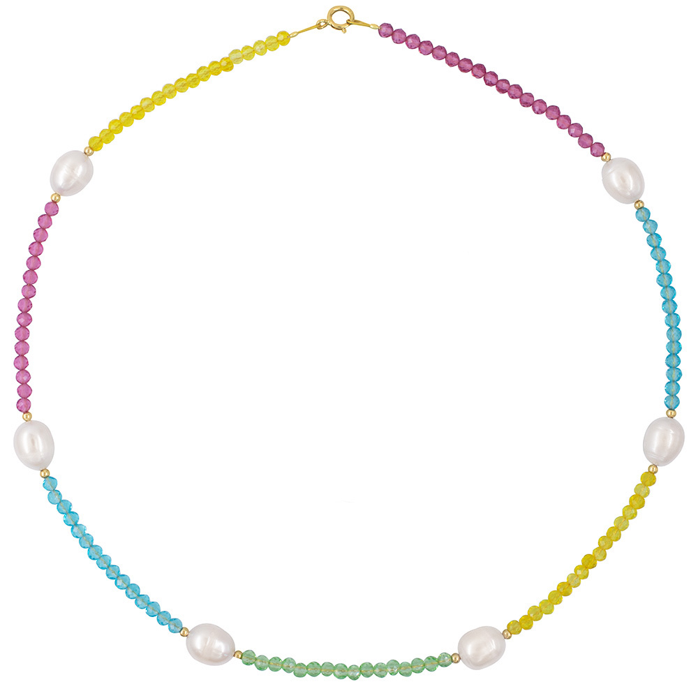 Κολιέ με Κ14 χρυσά στοιχεία, πολύχρωμα salomite και μαργαριτάρια - F126369
