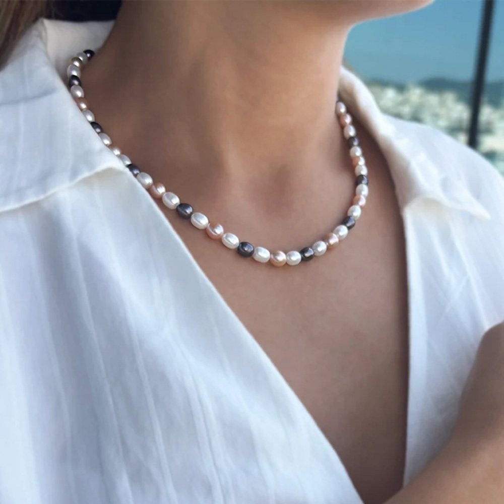 • 'Ενα υπέροχο κολιέ με πολύχρωμα μαργαριτάρια Fresh Water Pearl διαμέτρου 7x8 χιλιοστών Long.