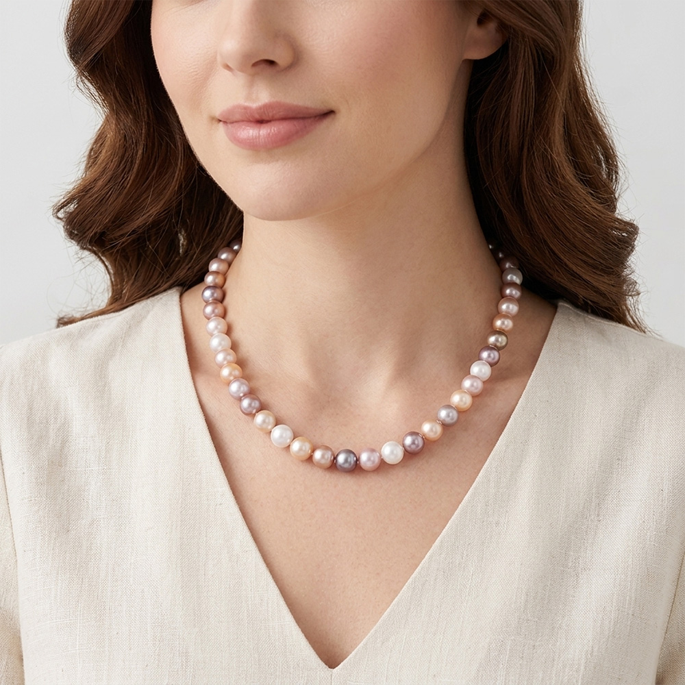 • Ένα υπέροχο κολιέ με στρόγγυλα πολύχρωμα φυσικού χρωματισμού μαργαριτάρια Fresh Water Pearl διαμέτρου 10-11 χιλιοστών.