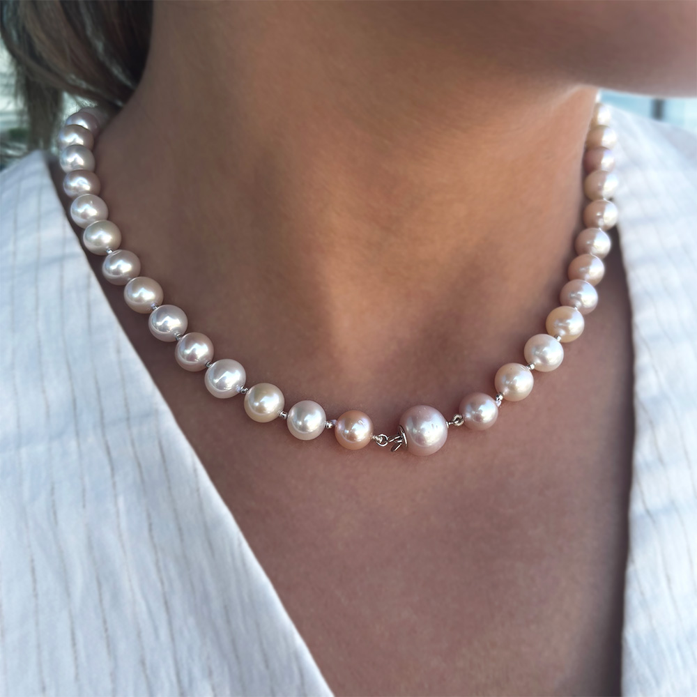 Ένα εντυπωσιακό μαργαριταρένιο κολιέ που θα λατρέψετε να φοράτε, είτε με το κούμπωμα πίσω σαν κλασικό κολιέ είτε με το κούμπωμα μπροστά ή στο πλαί.