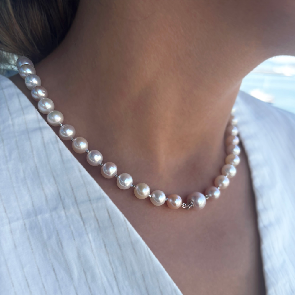 • Ένα υπέροχο κολιέ με πολύχρωμα φυσικά στρόγγυλα μαργαριτάρια Fresh Water Pearl διαμέτρου 8-9 χιλιοστών.