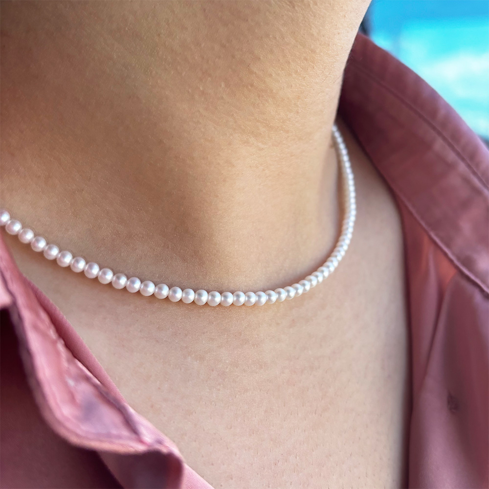 Ένα μαργαριταρένιο κολιέ που εντυπωσιάζει με το τέλειο σχήμα του για όλες τις ώρες της ημέρας, που αξίζει να έχετε στη συλλογή σας.