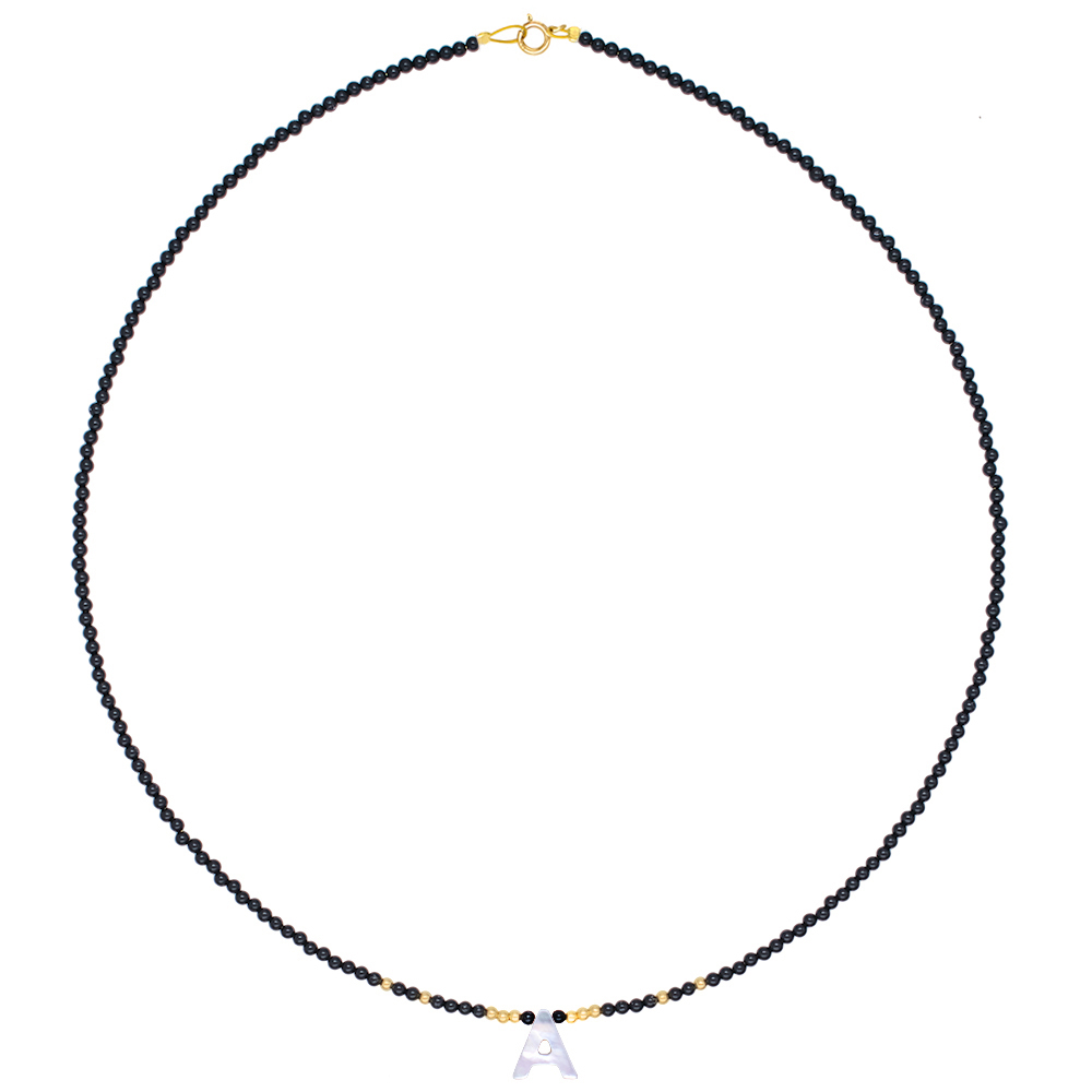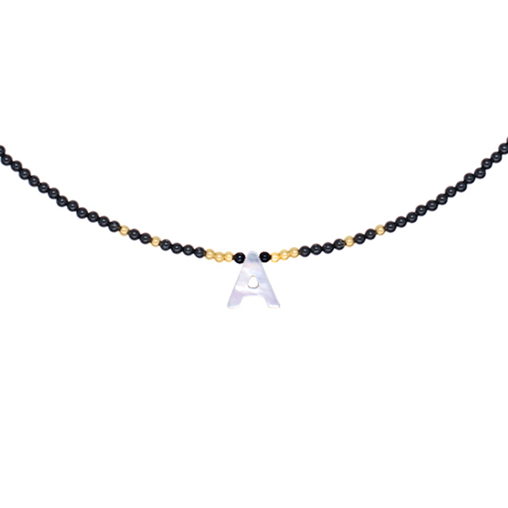 Στο κέντρο του κολιέ υπάρχει ένα μονόγραμμα Α από Mother of Pearl διαμέτρου 10x9 χιλιοστών.