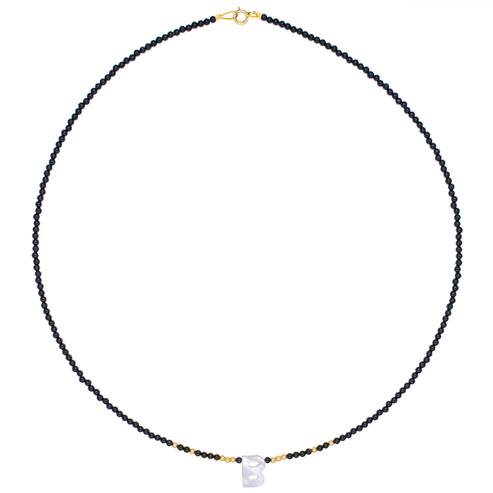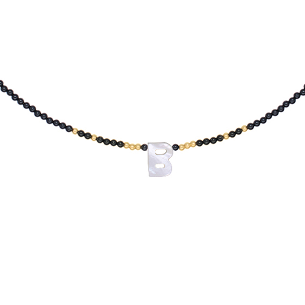 Κολιέ με Κ14 χρυσά στοιχεία, όνυχα και μονόγραμμα B με mother of pearl - F124766B